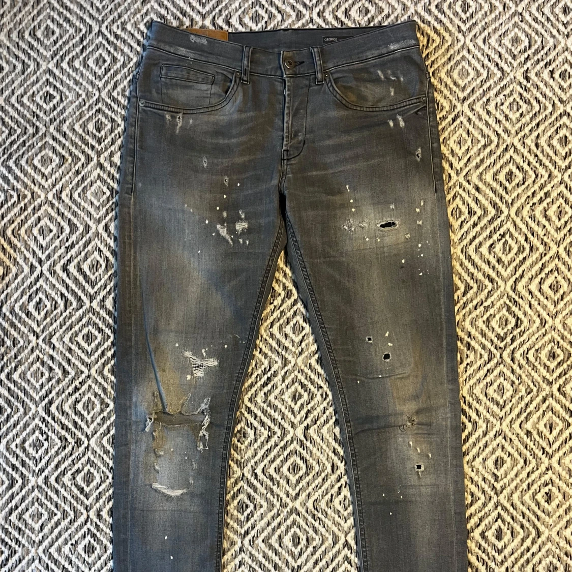 Tjena! Säljer nu ett par tvär feta Dondup jeans! | Skick 9/10 Mycket bra! | Midja: 41cm | Längd: 104cm | ”hål” bild 4-5 | Nypris ca 3500kr | Mitt pris 925kr | Kom gärna pm vid frågor eller funderingar | Postas eller möts upp i Gävle!