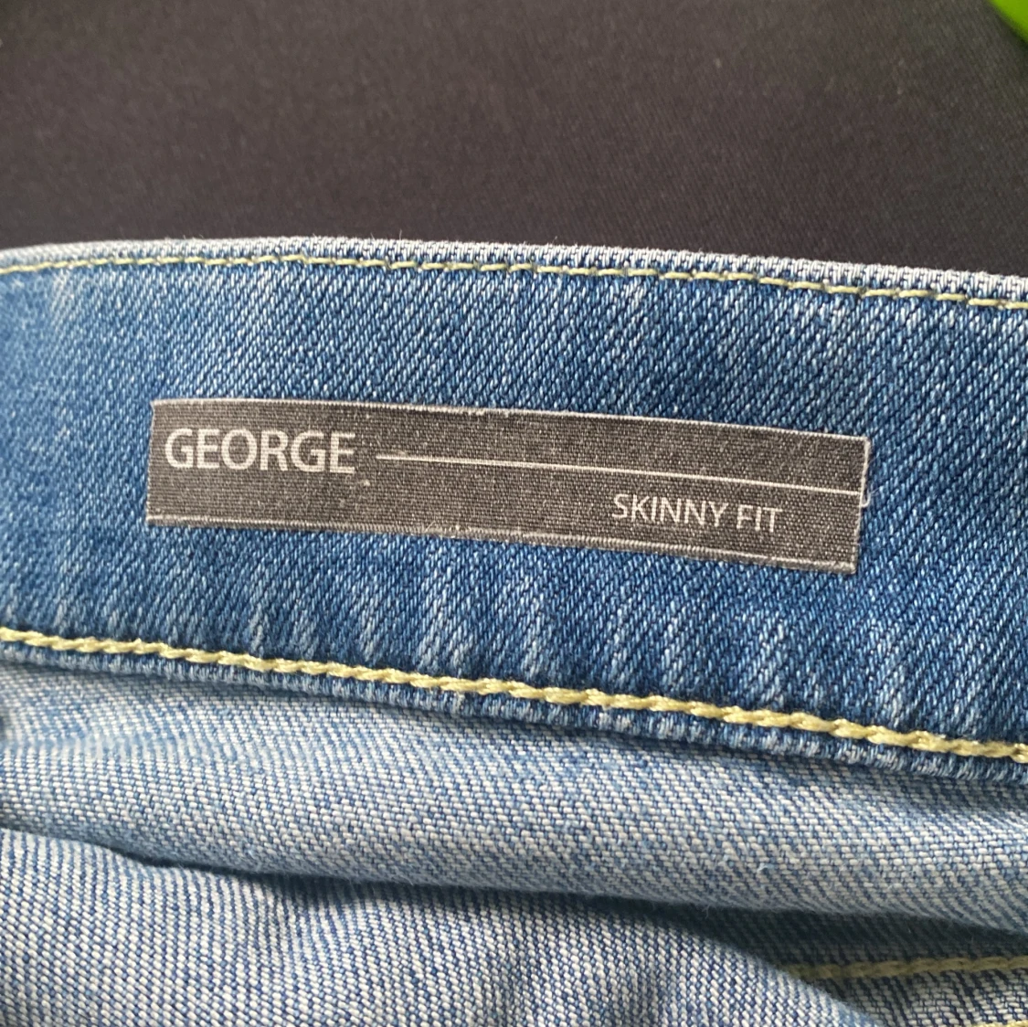 Säljer ett par ljusblå jeans från dondup i storlek 34. Jeansen har en relaxed passform med klassiska fem fickor och snygga slitningar. De är tillverkade i mjukt denimtyg och har orangea sömmar som ger en schysst kontrast. Perfekta för en chill och avslappnad stil.