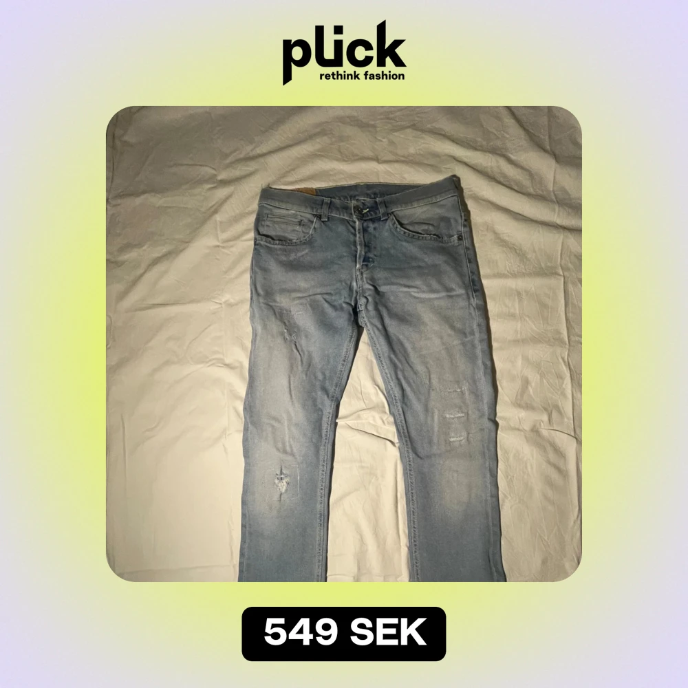 Dondup jeans[] modell-George skinny fit[] feta med slitningar vilket är populärt[]den har en slitning på sista bilden som ja inte säker på om d är design eller modellen[] MVH