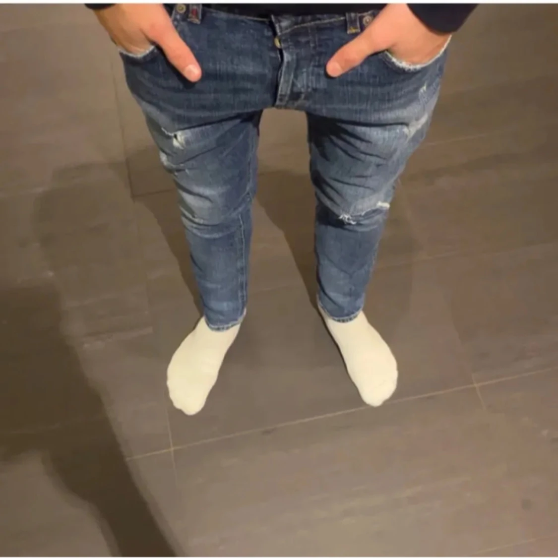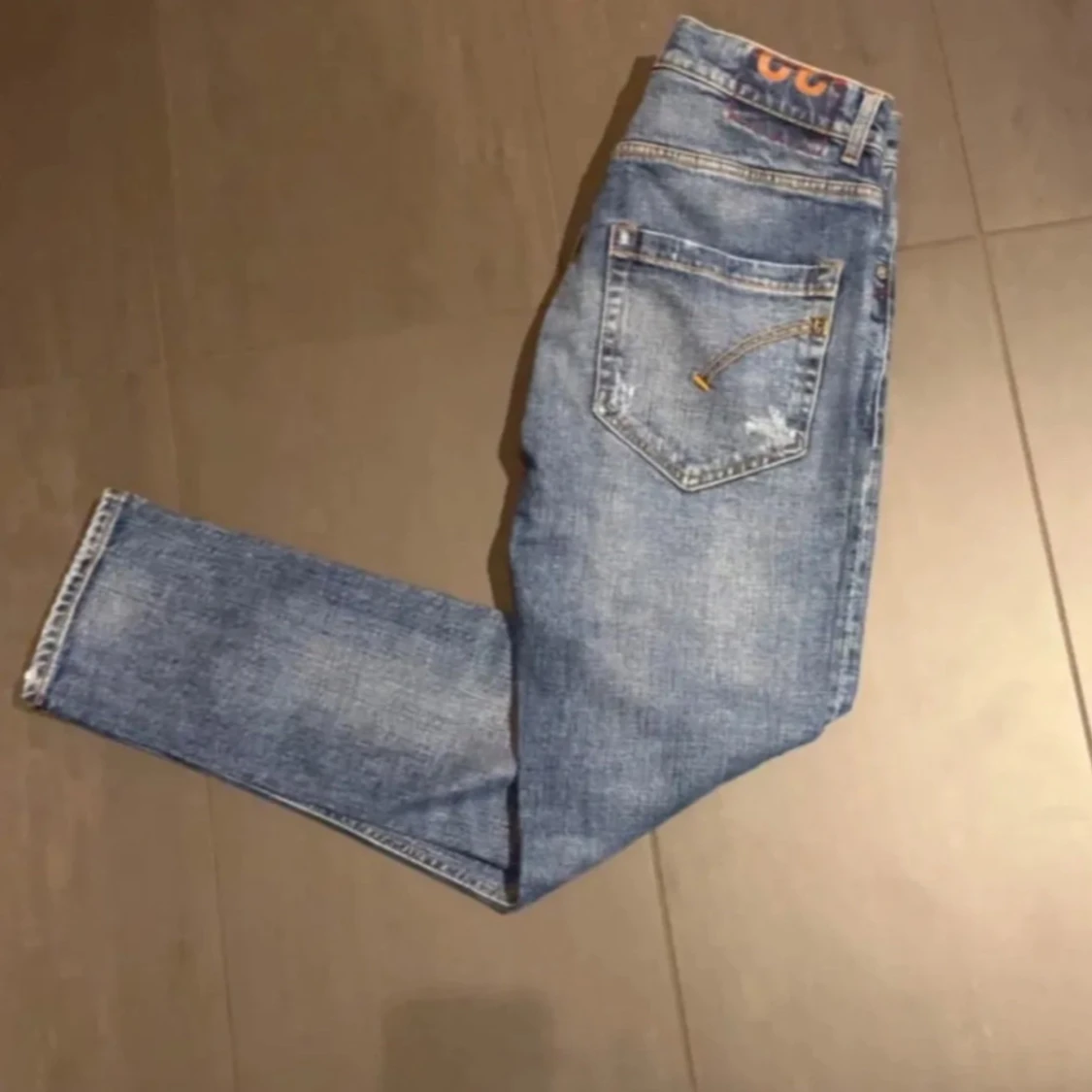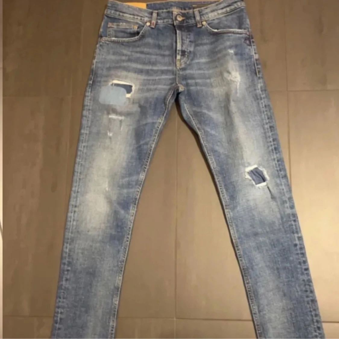 Feta dondup jeans med slitningar. Modellen är 180 och väger 67 kg. Hör av er vid frågor eller funderingar⚜️🙌 storlek 32