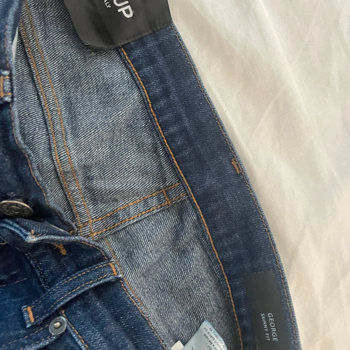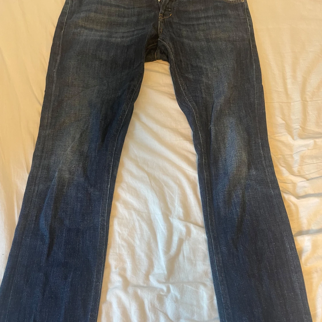 Storlek 31, mörkblåa och i väldigt fin kvalite. Säljer då de sitter alledes för smått på mig.