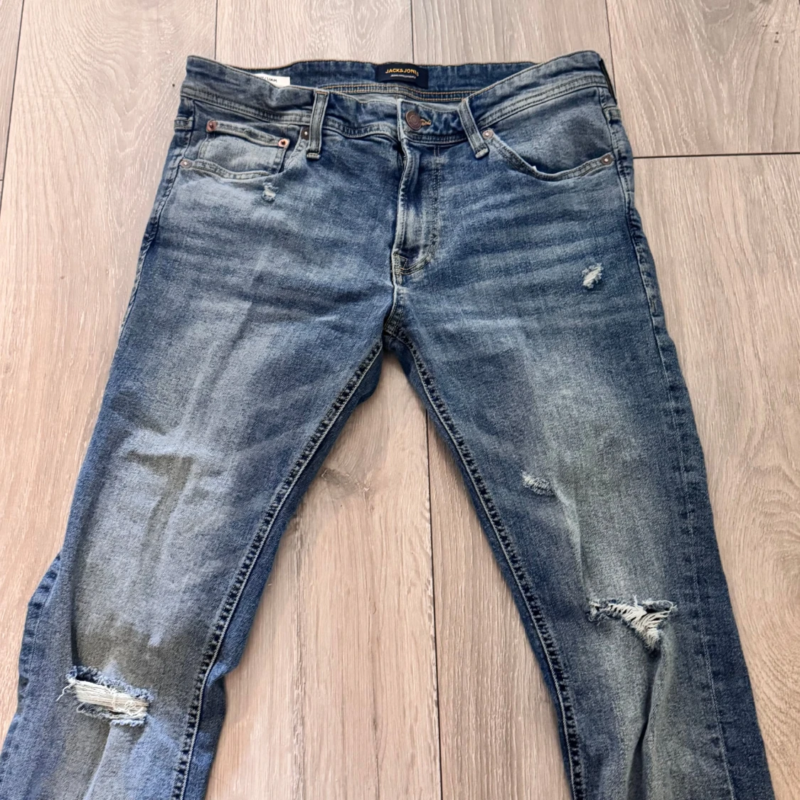 Säljer dessa snygga Jack and Jones jeans med slitningar som är ett perfekt plagg när man ska chilla eller ska ut med vänner. De är W33 L34. Kontakta vid funderingar!