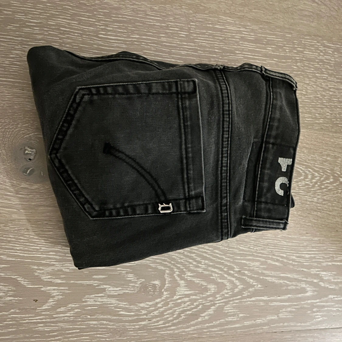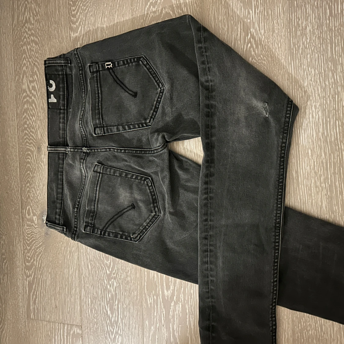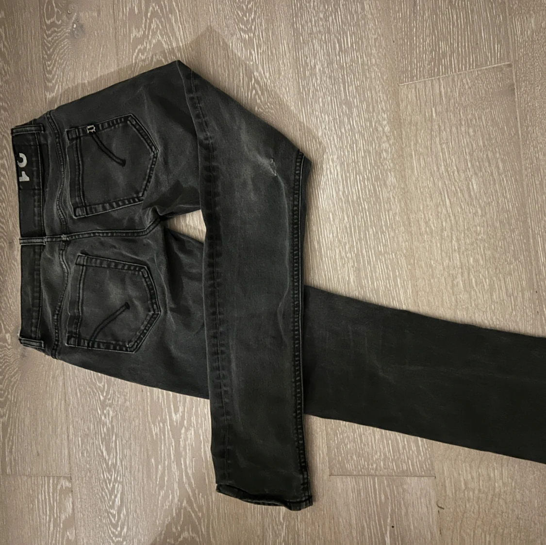 Säljer ett par svart/gråa dondup jeans i skinny fit(George) och har diskreta slitningar. Jeansen har en smal passform, låg midja. Snygga detaljer och det klassiska dondup märket. Nypris på dessa är ca: 3000kr ,Mitt pris:1199kr🥵. Jeansen är väldigt populära just nu, och priset är inte hugget i sten 🪨Hör av er vid funderingar😊