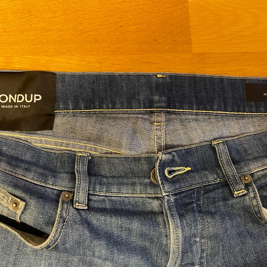 Säljer ett par blå Dondup jeans som är köpta i januari. Modellen är icon men jag skulle säga att passformen är ganska så slim fit. Jeansen är snålt använda och har inga tydliga tecken på användning. Nypris ligger på 3000. Mitt pris är inte hugget i sten och jag kan vara villiga att förhandla