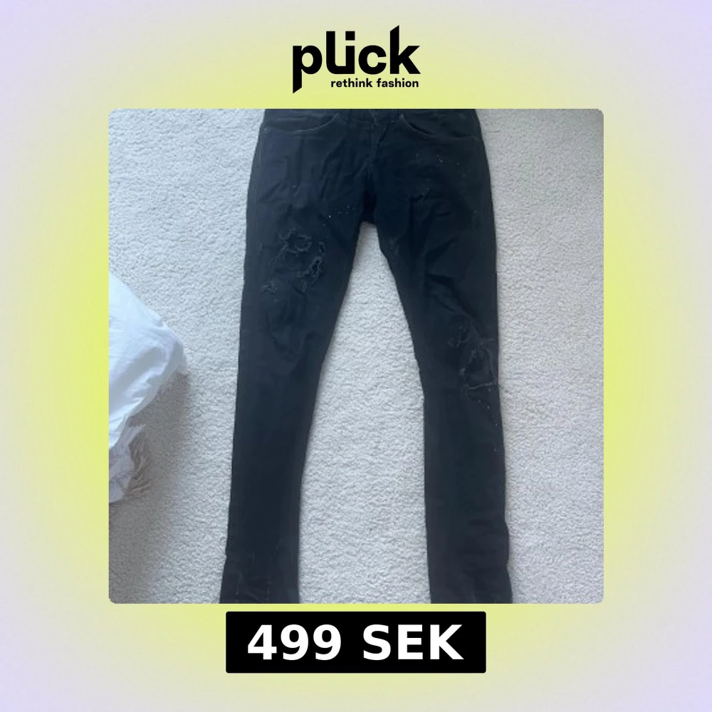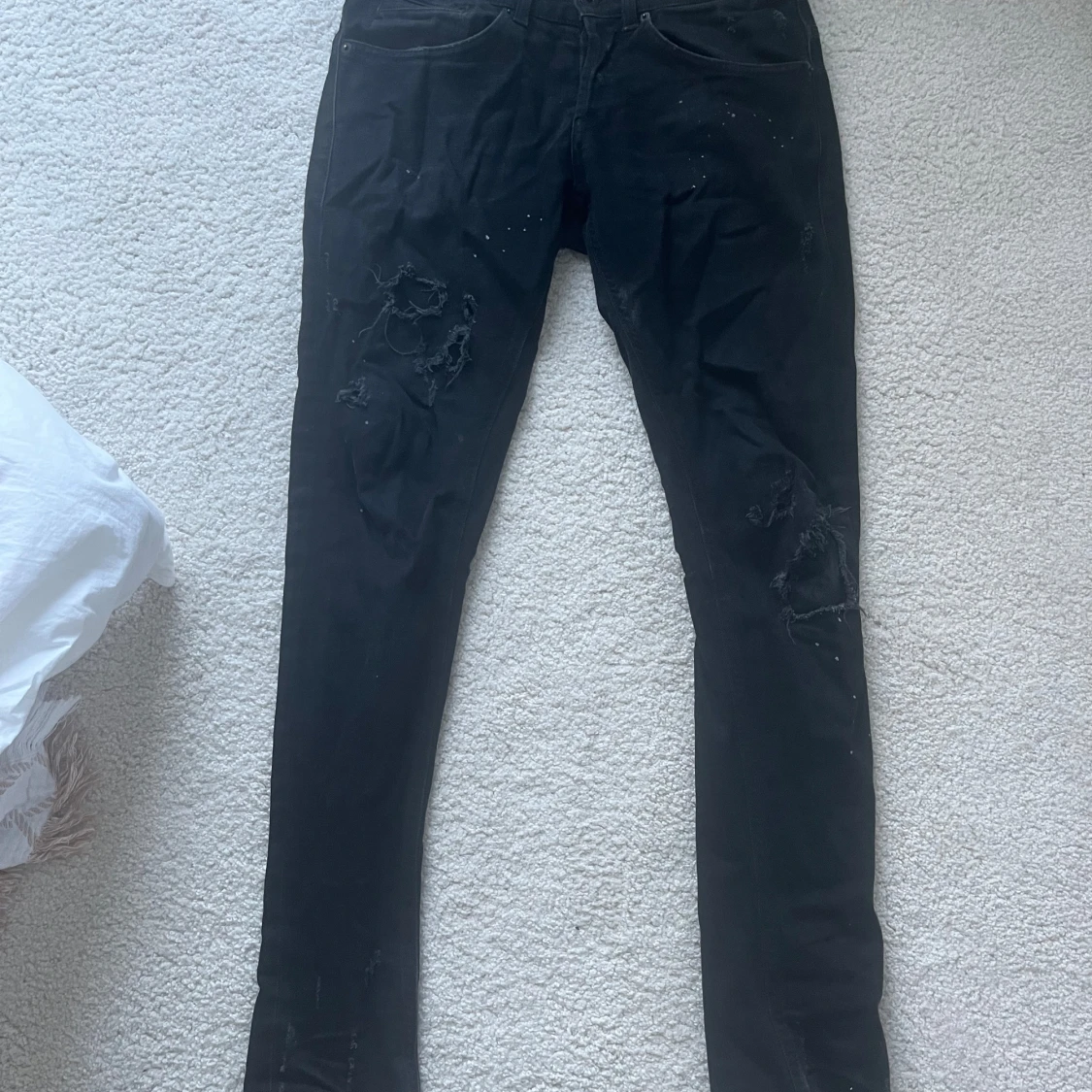Svarta skinny jeans från Dondup med slitna detaljer och hål på benen. Jeansen har klassisk femficksdesign och diskret D-logga på bakfickan. Snyggt smal passform och stretchigt jeanstyg som sitter tajt längs benen.