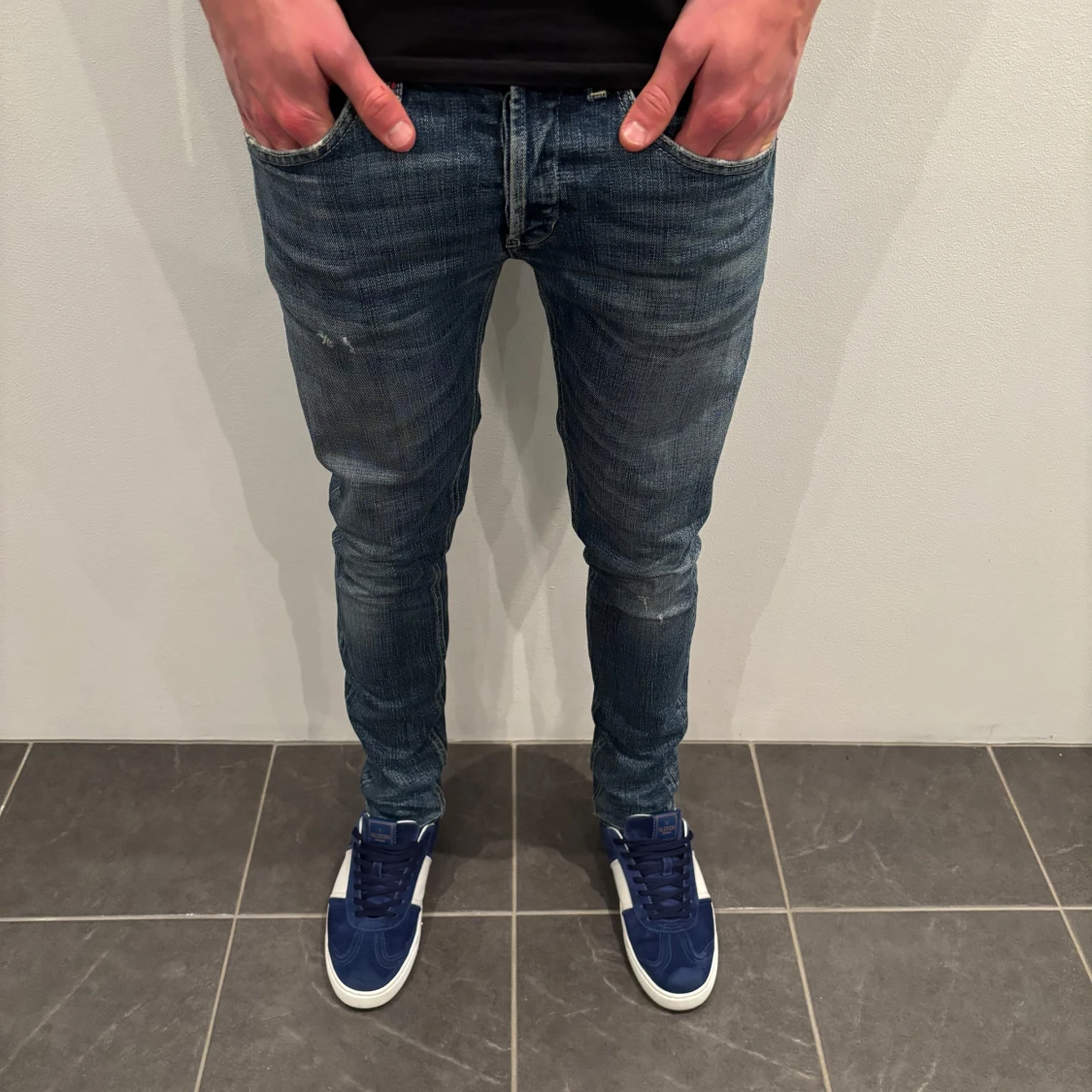 Dondup Jeans George! Trendigaste jeansen på marknaden. Skick= 9,5/10 Ny pris= 4000 kr Säljs för= 1099 kr (modellen är destroyed från fabrik vilket är sjukt populärt)