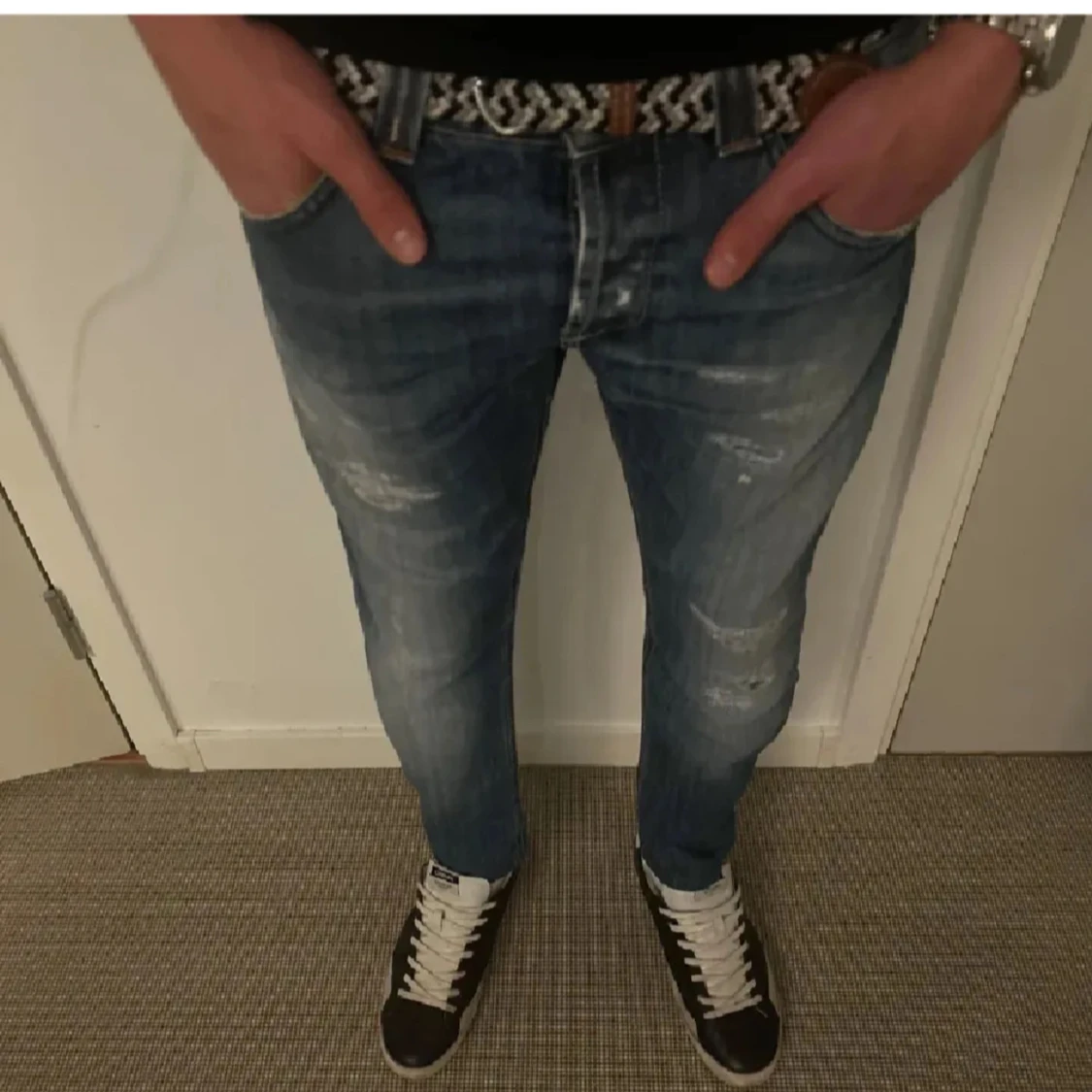 Dondup jeans modell Jar storlek W32. Slim fit. Snygga jeans me slitningar nypris 3000 kr +.Säljer för 679 går att diskuteras vid snabb affär. Mycket bra skick inga defekter 9/10. För fler och bättre bilder är det bara att skriva !!!