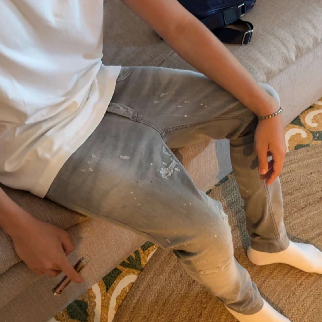 Snygga grå skinny jeans från George med slitna detaljer och färgstänk för en cool, avslappnad vibe. Helt nya och köpa för cirka en månad sedan.