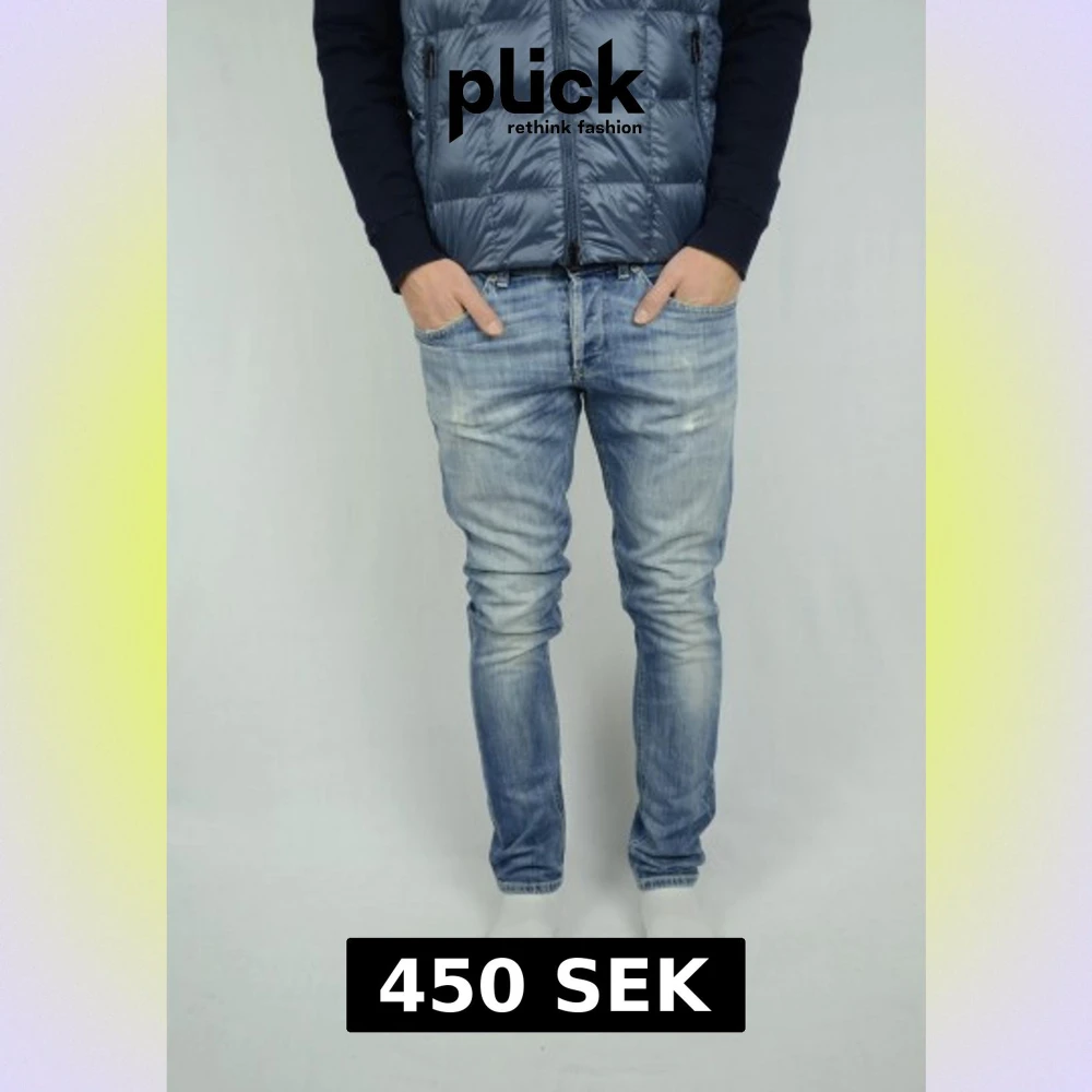 DONDUP GEORGE JEANS Storlek : W32 Modell : George Mått : A = 43CM - B = 104CM Användning : Jeansen är i ett fint skick utan defekter, slitningar som design Nypris : Cirka 3000SEK Modellen på bilden är 182CM och väger 76KG