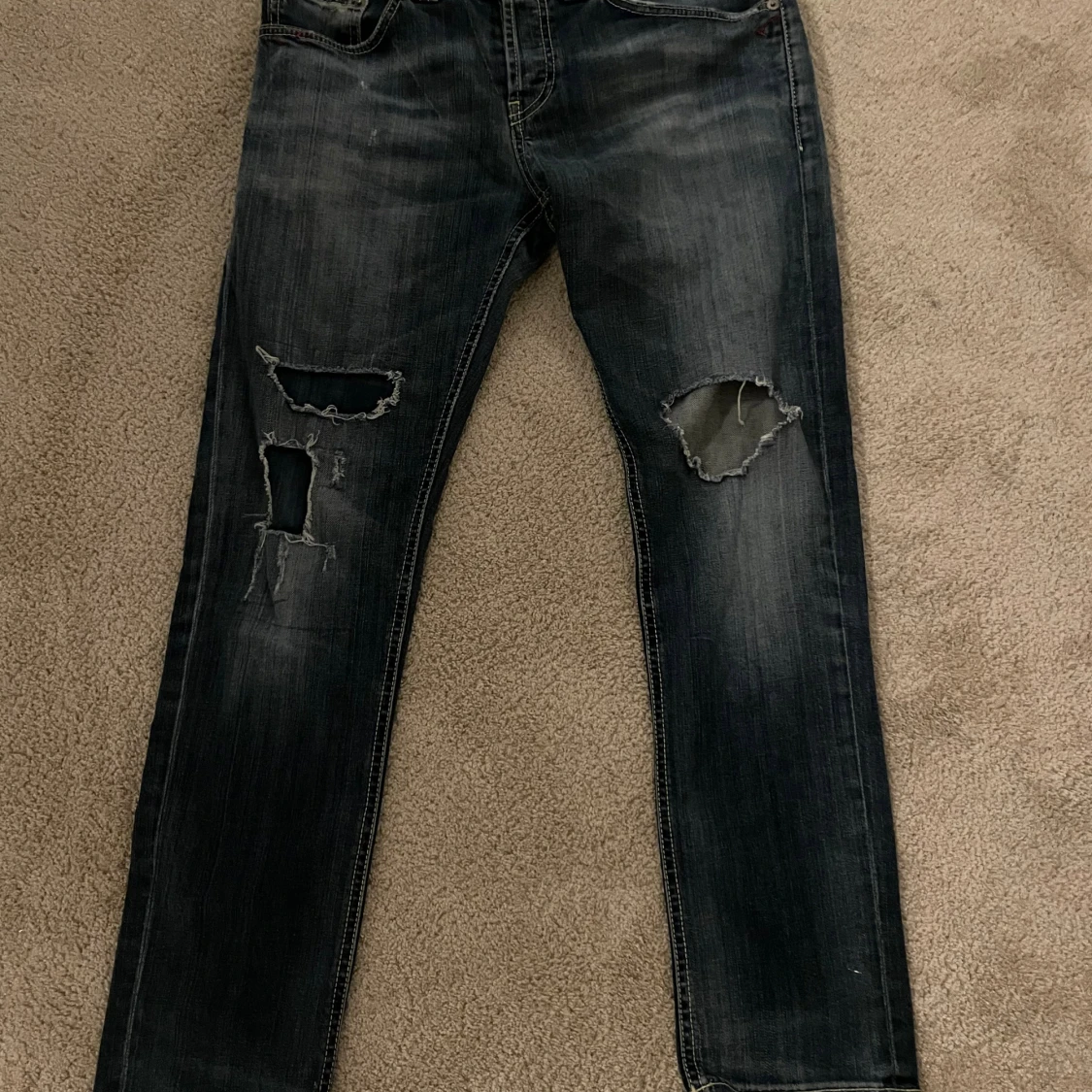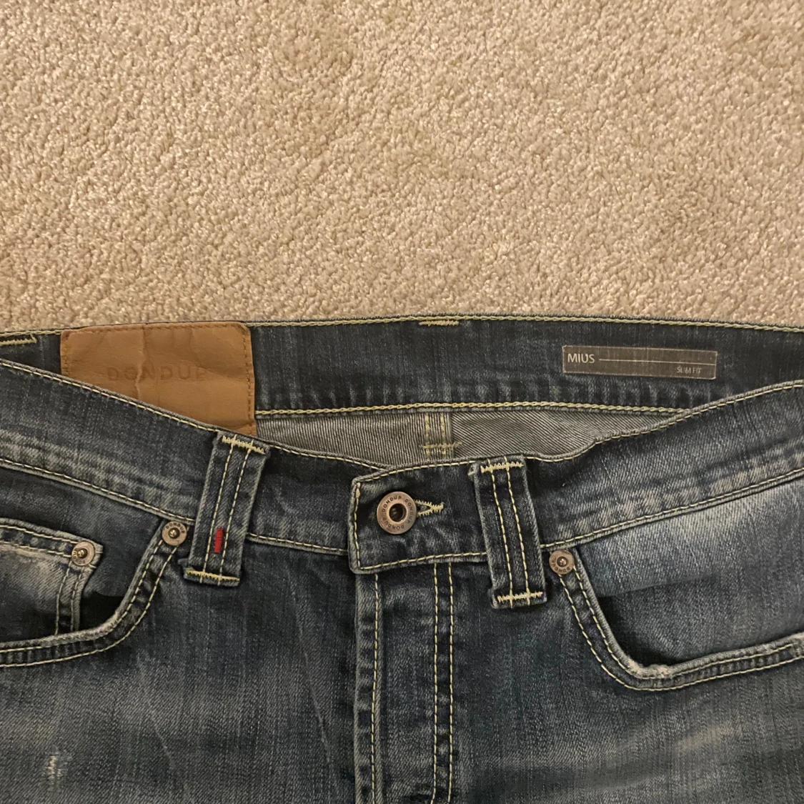 Mörkblå dondup Mius i storlek W32 och L30!| nypris runt 3000 men mitt pris är 650! | skicket är utmärkt, slitningar är en del av designen! | skriv vid minsta fråga eller fundering