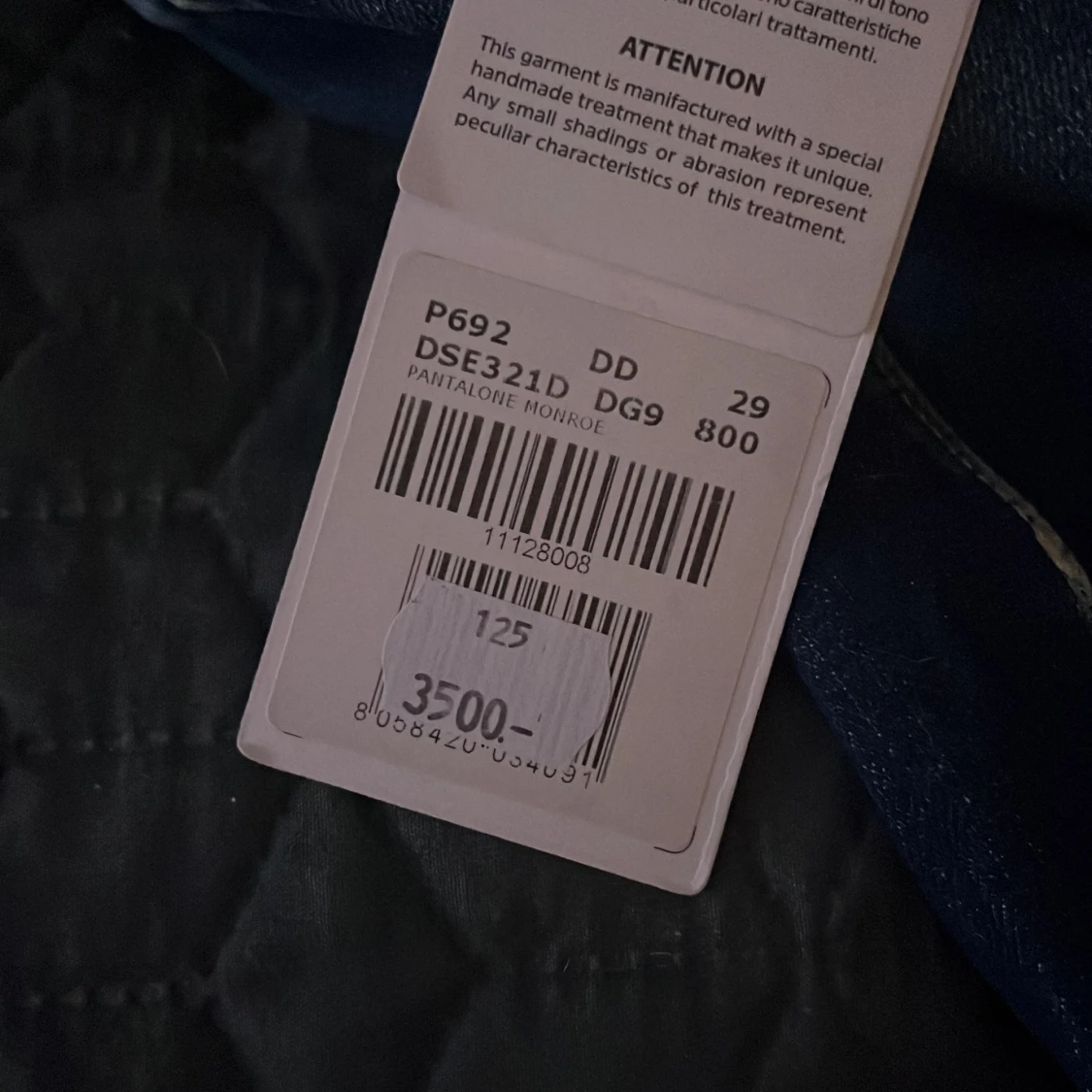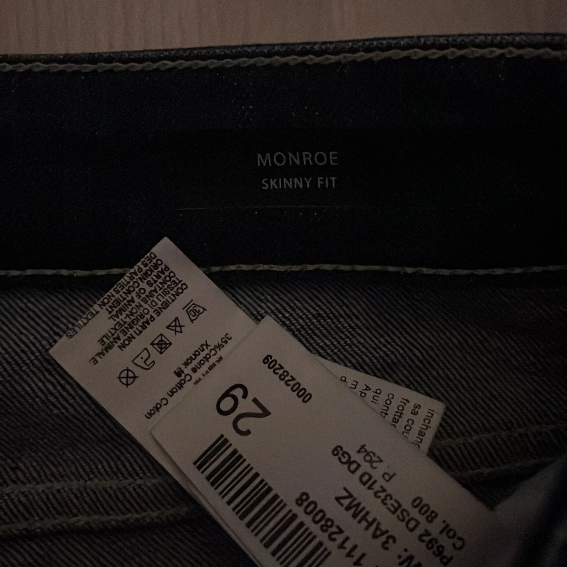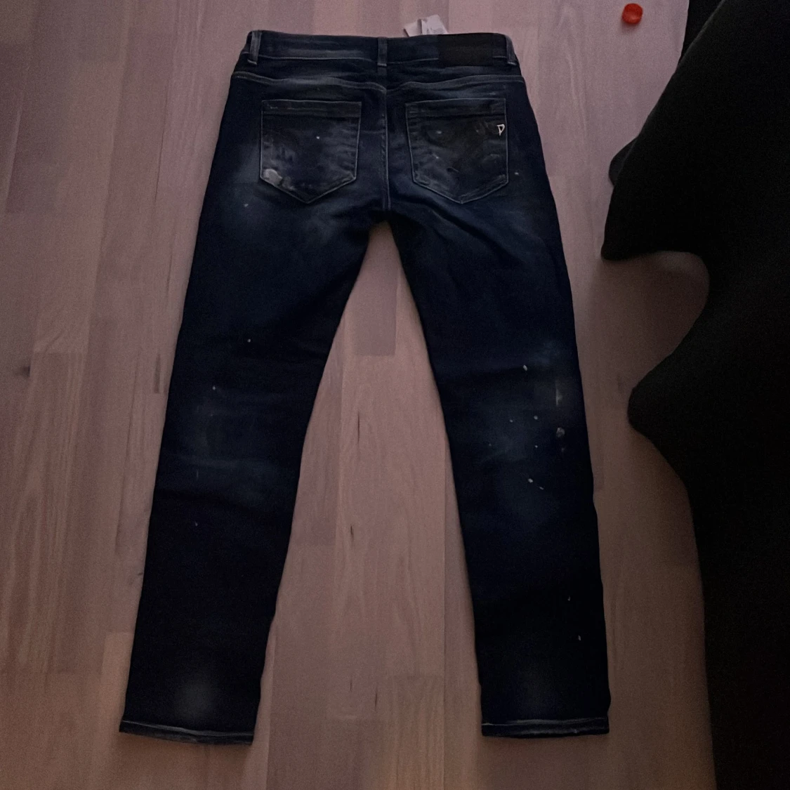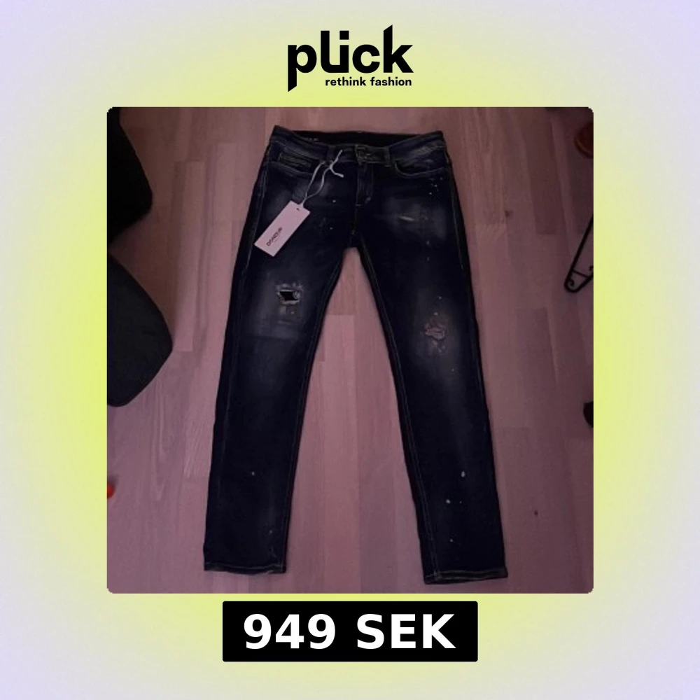 Snygga Dondup Monroe skinny jeans i mörkblå denim med slitna detaljer och en modern skinny fit. Tillverkade i Italien, dessa jeans har en klassisk femficksdesign och en stilren look! Köpta för 3,5k i affär! Topp skick använda endast Max 6 gånger! Obs inget og.