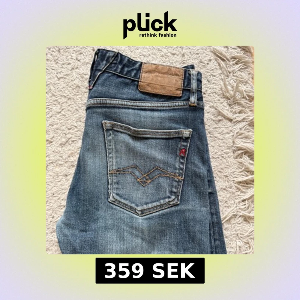 Snygga Replay Anbass jeans i blå tvättad denim med klassiska fem fickor och coola slitningar. Byxorna har smal passform och detaljerad bakficka med broderi samt läderpatch i midjan. Perfekta för en avslappnad men trendig look. Dm för frågor⭐️