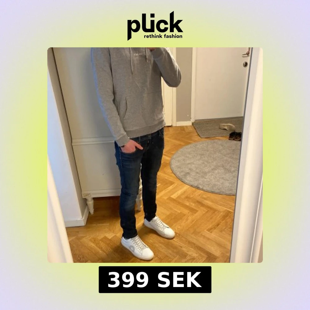 Säljer ett par Replay Anbass jeans i mörkblå tvätt med snygga slitningar och kontrastsömmar. Modellen är slim fit med klassisk femficksdesign. Jeansen har Replay-logga på fickan och är tillverkade i stretchigt jeanstyg för skön passform.