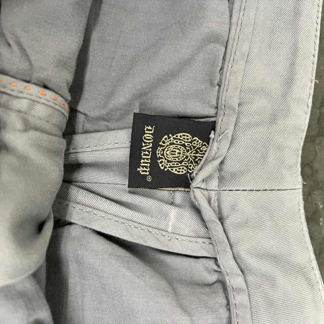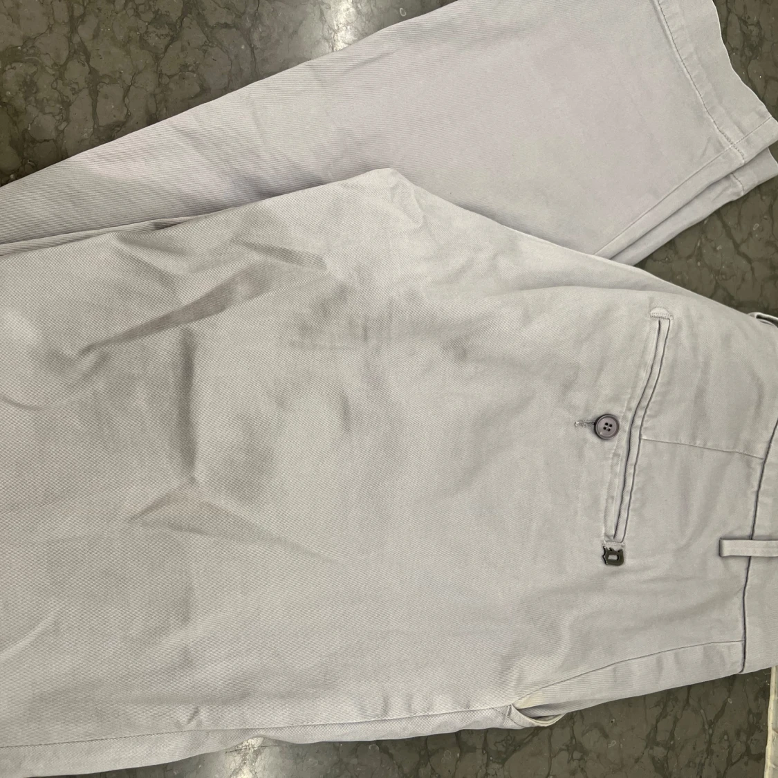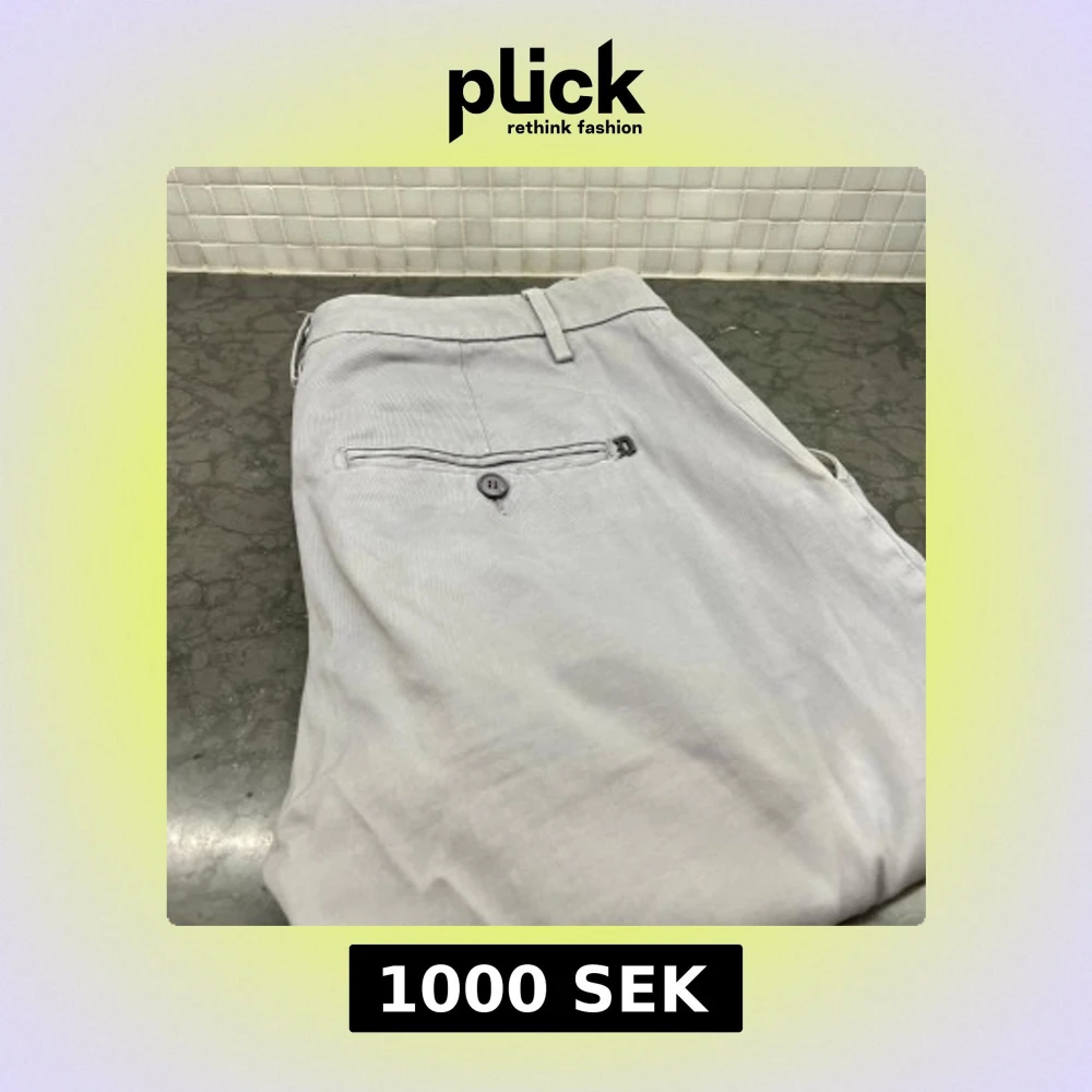 Snygga grå chinos med diskret randigt mönster. De har en klassisk design med knappar och hällor för bälte. Perfekta för en stilren look. Dondup shinos nypris 3500kr