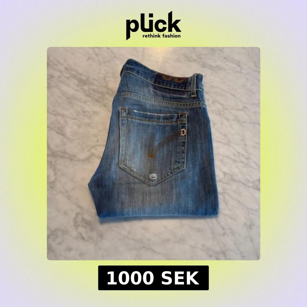 Snygga blå jeans från Dondup med slitna detaljer. Slimfit och säljer för 1000, (nypris runt 3000)