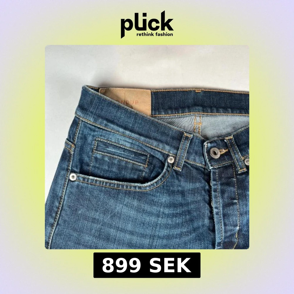 Snygga mörkblå jeans från Dondup med klassisk femficksdesign och kontrastsömmar. Jeansen har raka ben och normal passform. Storlek: W30 och är säljs för 899kr då nypriset är 3200kr