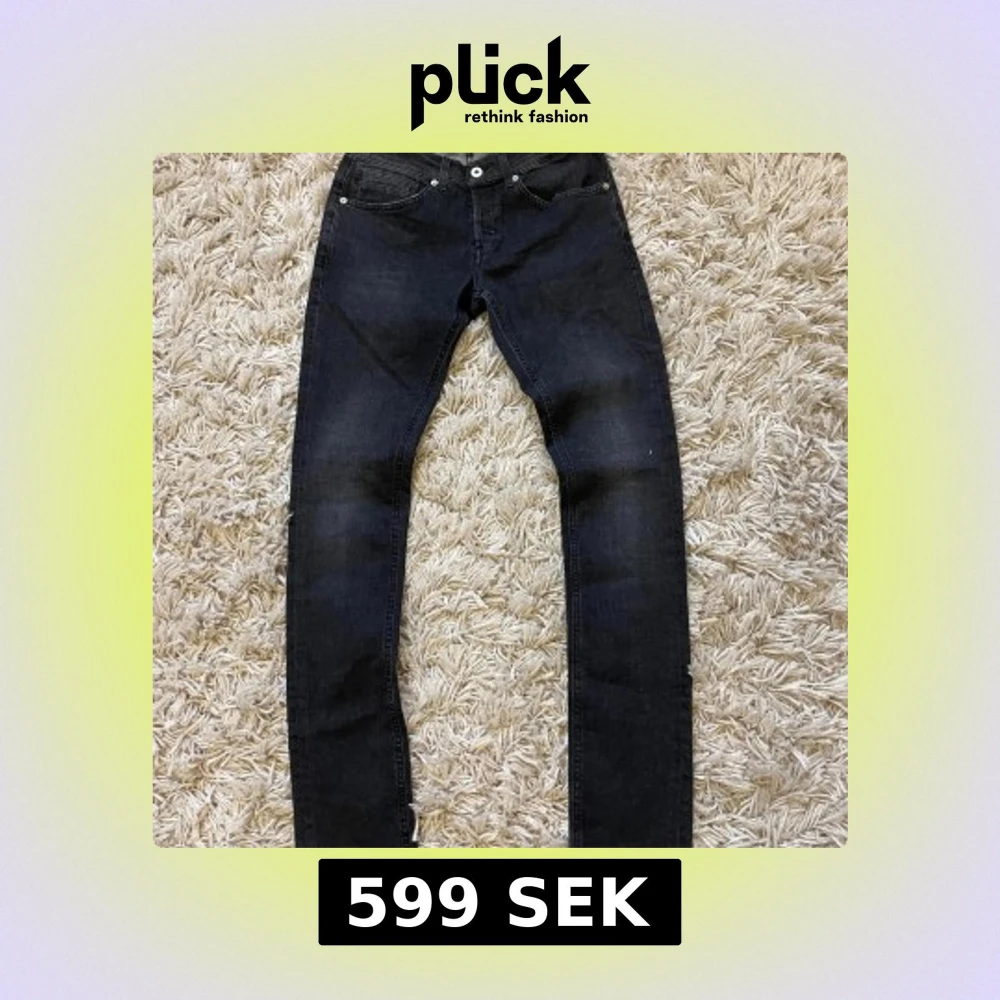 Säljer ett par svarta slim jeans från Dondup, modell George Skinny Fit. Jeansen har klassisk femficksdesign, smal passform och är tillverkade i ett stretchigt jeansmaterial. Snygga detaljer och diskret tvättad look.