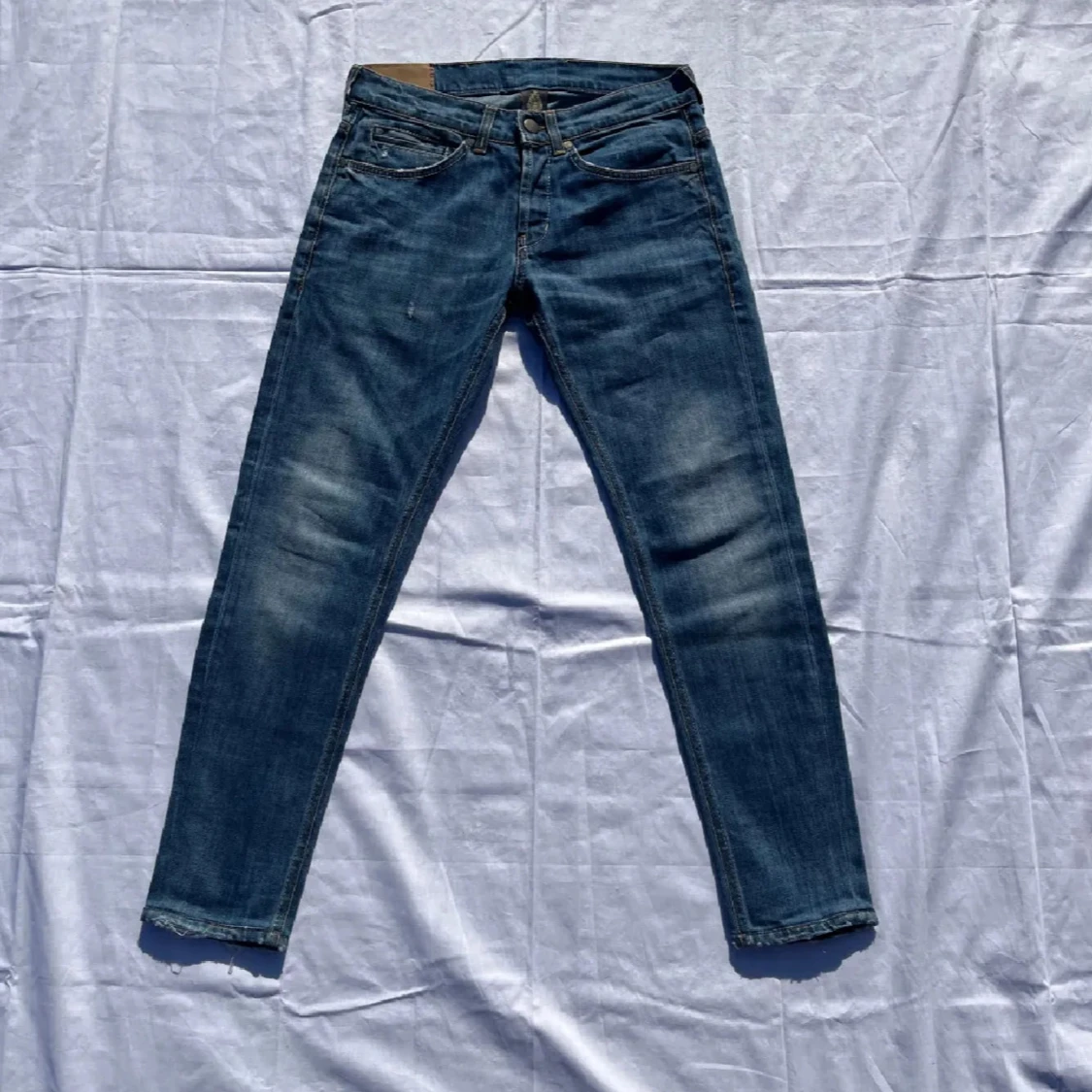 Säljer nu dessa snygga klassiska Dondup George jeansen i en fin blå färg. Skicket på dessa är 9/10 utan några skador alls. Storleken är w31. Midja 40cm lår 23cm ytterlängd 92cm innerlängd 70cm