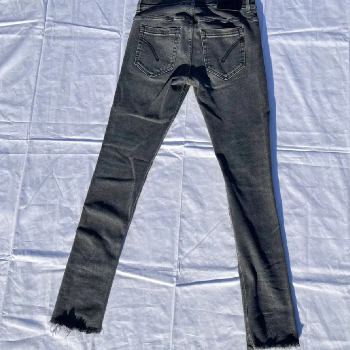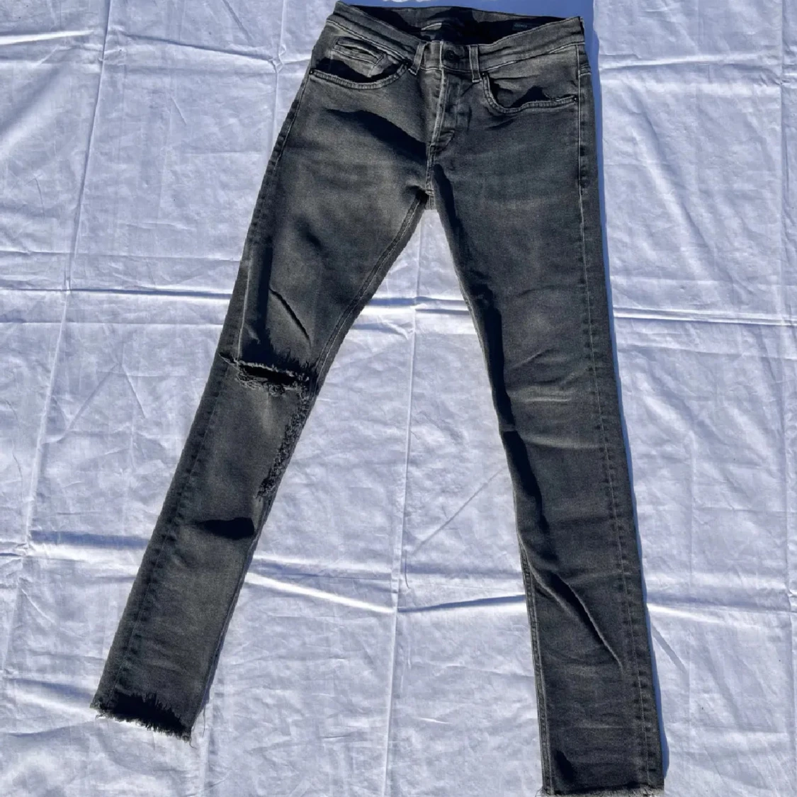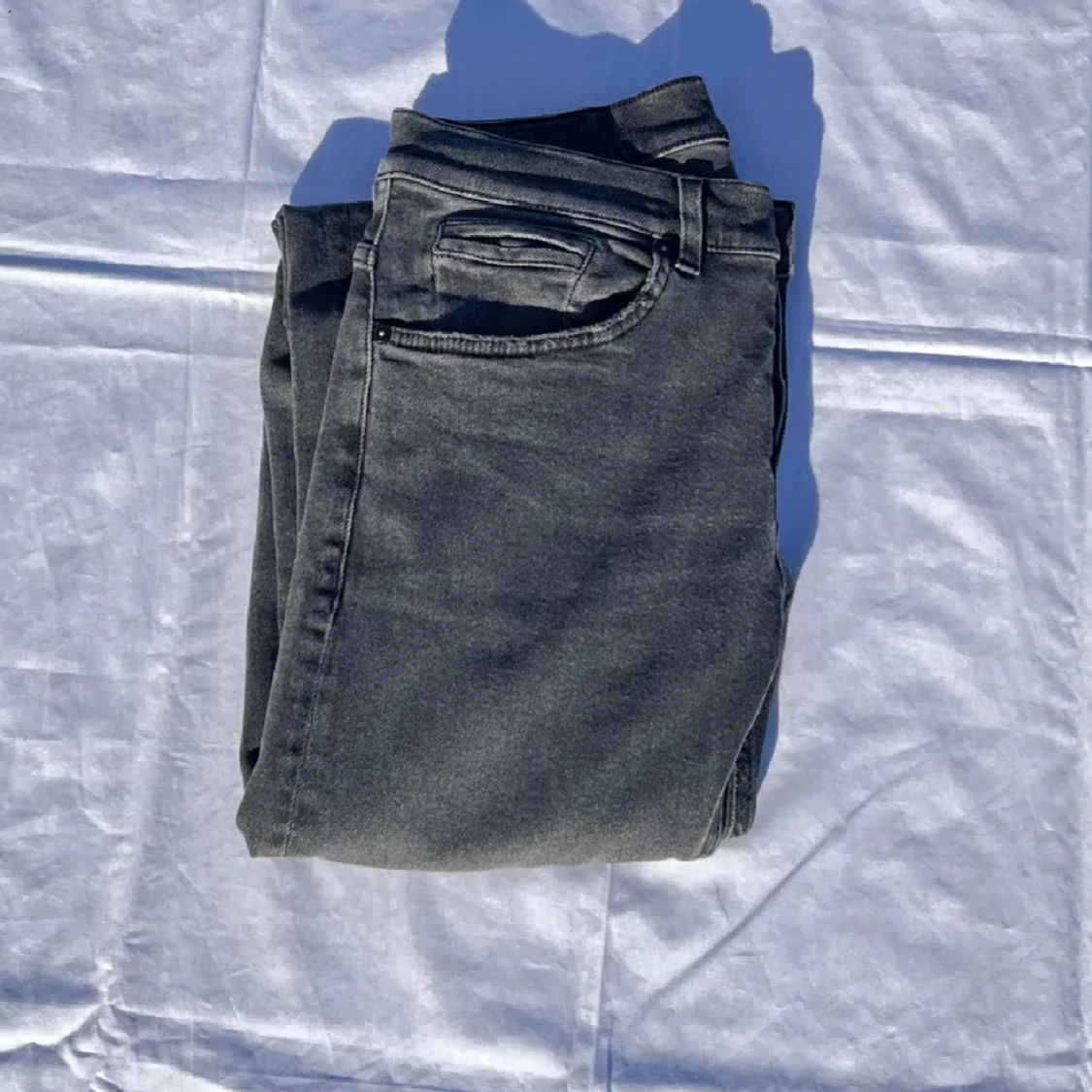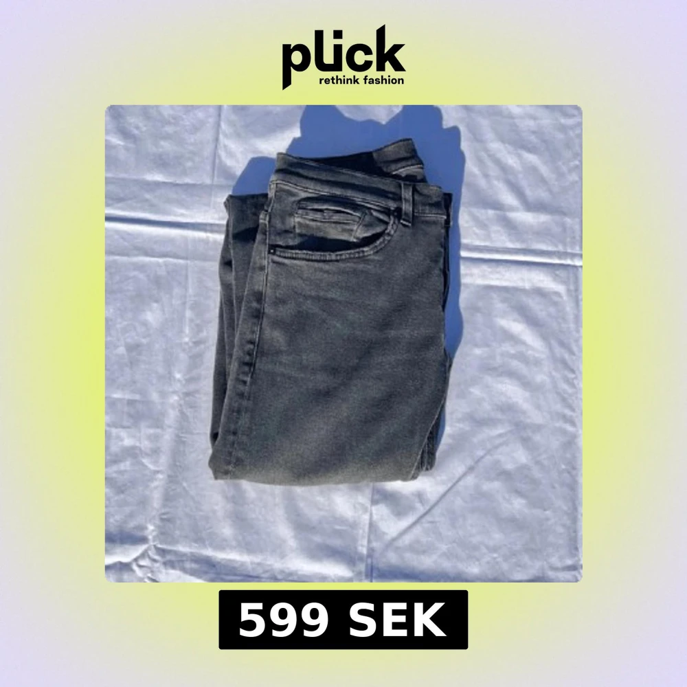 Säljer nu dessa otrligt snygga mörkgråa jeans med en snygg knä slitning. Jeansen är i skick 9/10 utan några skador. Storleken är 31. Midja 39cm lår 23cm ytterlängd 103cm innerlängd 77cm. För fler frågor eller liknande är det bara att höra av sig!