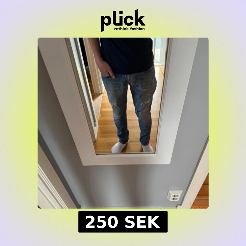 Dondup George jeans med mycket slitningar, längd 100cm och midja 39cm