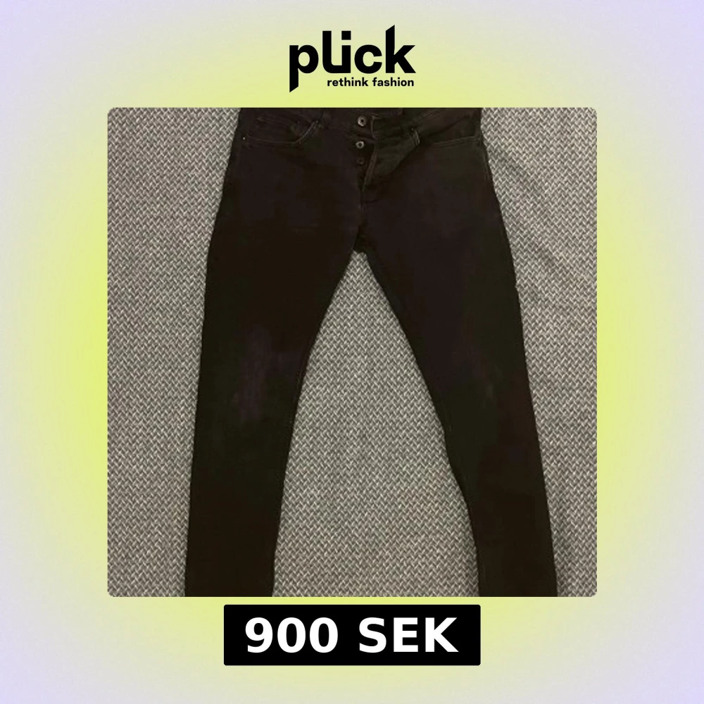 Svarta dondup jeans av modellen George. George märket har lossnat innanför jeansen