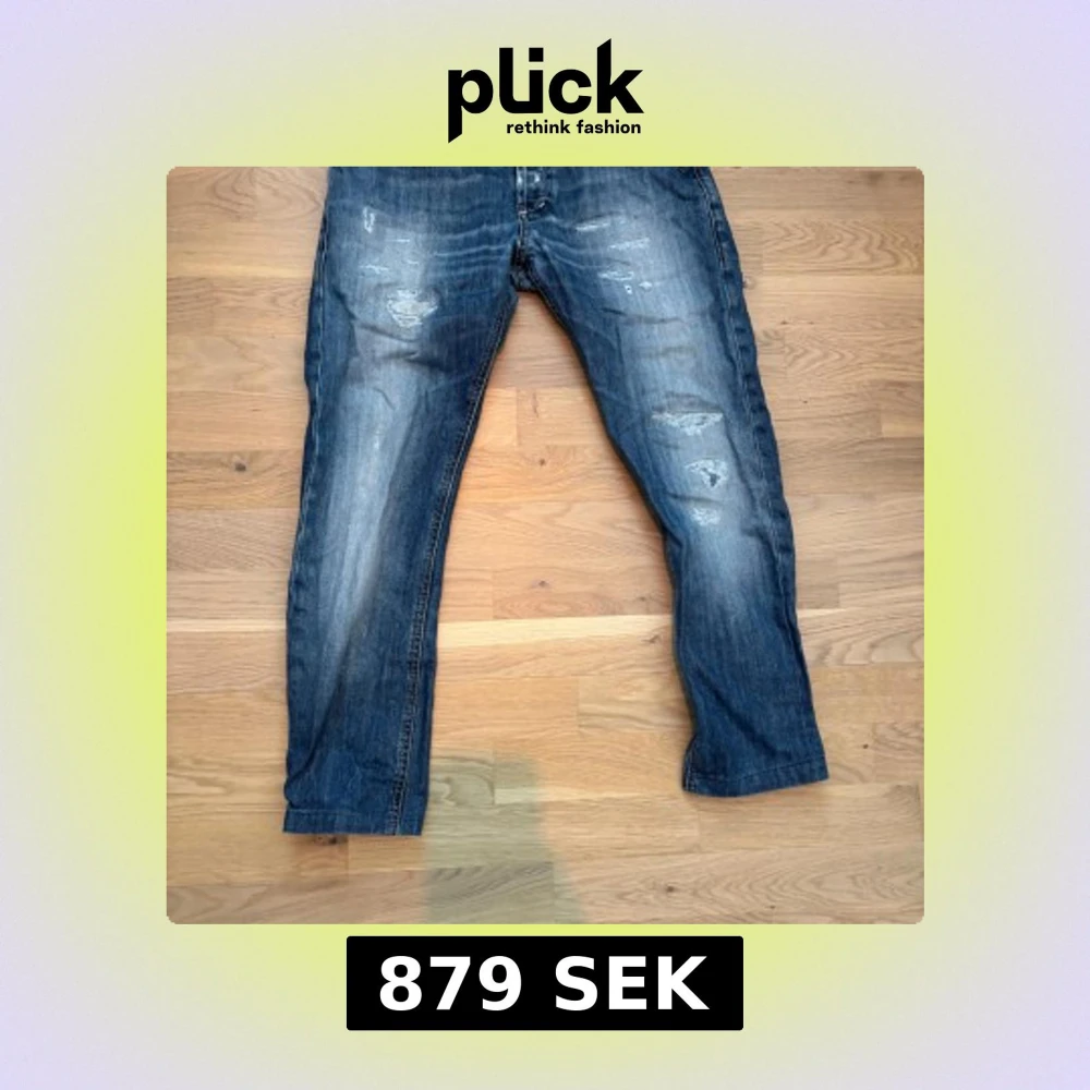 Säljer ett par blå jeans från Dondup med feta slitningar. Nypris Ca. 3000kr men säljer nu för 879kr. Priset kan diskuteras. Jeansen är w32 slim fit och passar perfekt för dig som gillar stiliga och slima jeans.