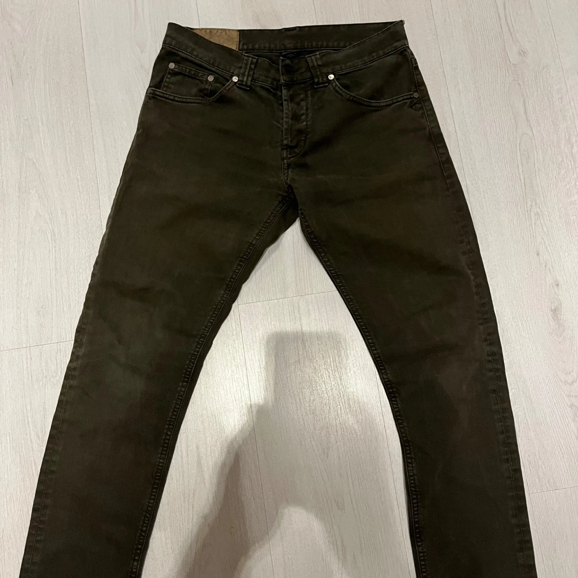 Mörkgrå dondup jeans Byxorna har en klassisk femficksdesign och en smal passform. Står W33 men är rätt så små i storleken så mer som en W31 längd: 98cm midja: 38cm