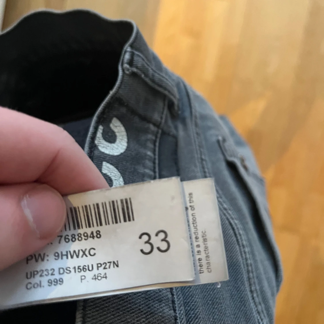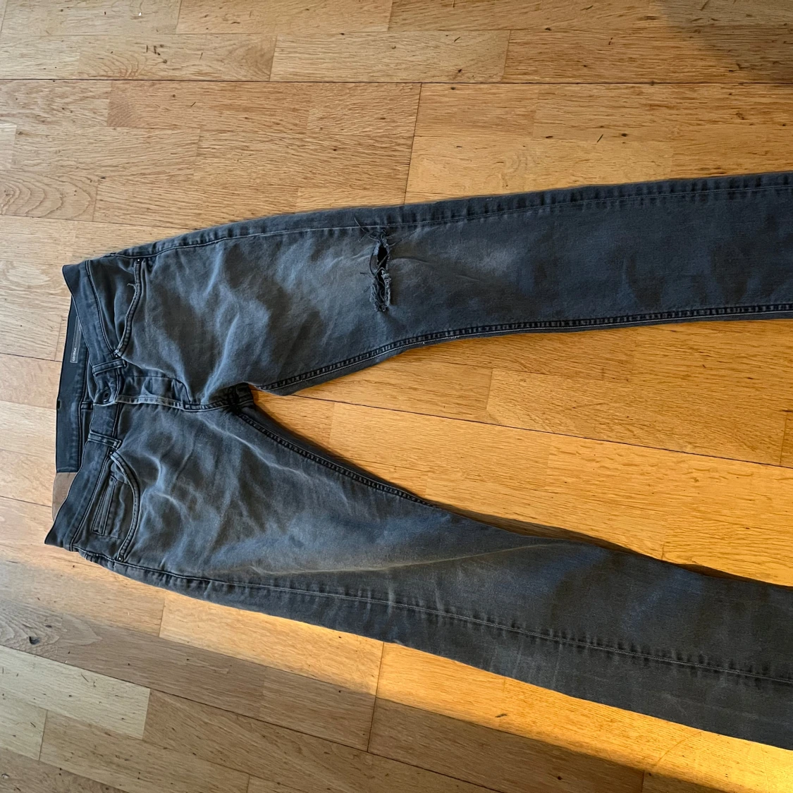 Snygga grå jeans med slitningar på framsidan och coola detaljer på bakfickorna. Dem är lite tajta för att vara i storlek 33. Så om du brukar använda 31/21 så skulle jag rekommendera . Storlek 33.