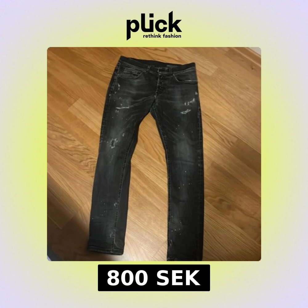 Säljer ett par svarta skinny jeans från Dondup, modell George. Jeansen har slitna detaljer, små hål och färgstänk för en riktigt edgy look. Klassisk femficksmodell med låg midja och smal passform. Perfekta för dig som gillar streetstyle, pris kan diskuteras vid snabb affär!