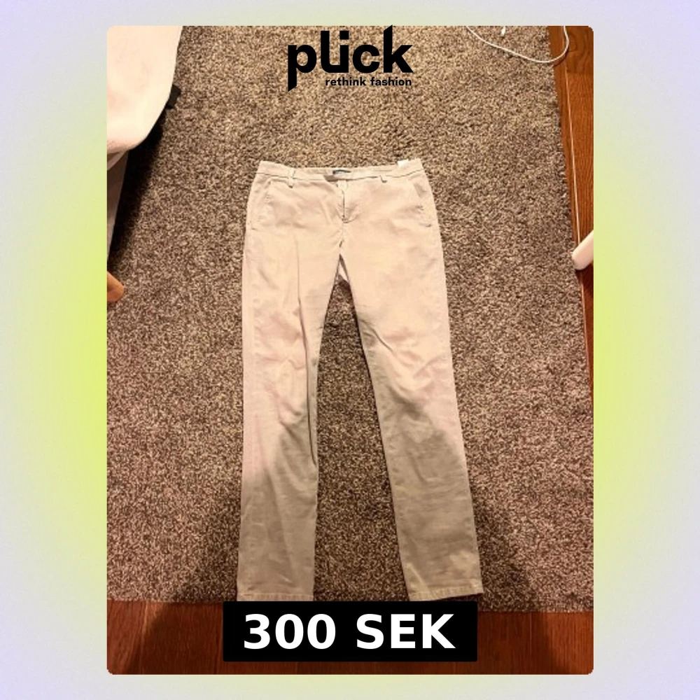Snygga beige chinos från Dondup, tillverkade i Italien. Byxorna har raka ben, normal passform och klassisk midja. De har framfickor, bakfickor med knapp och en liten metall-D-detalj. Materialet är mjukt och känns lyxigt, perfekt för en clean och stilren look.
