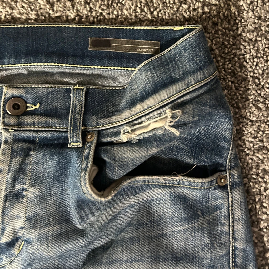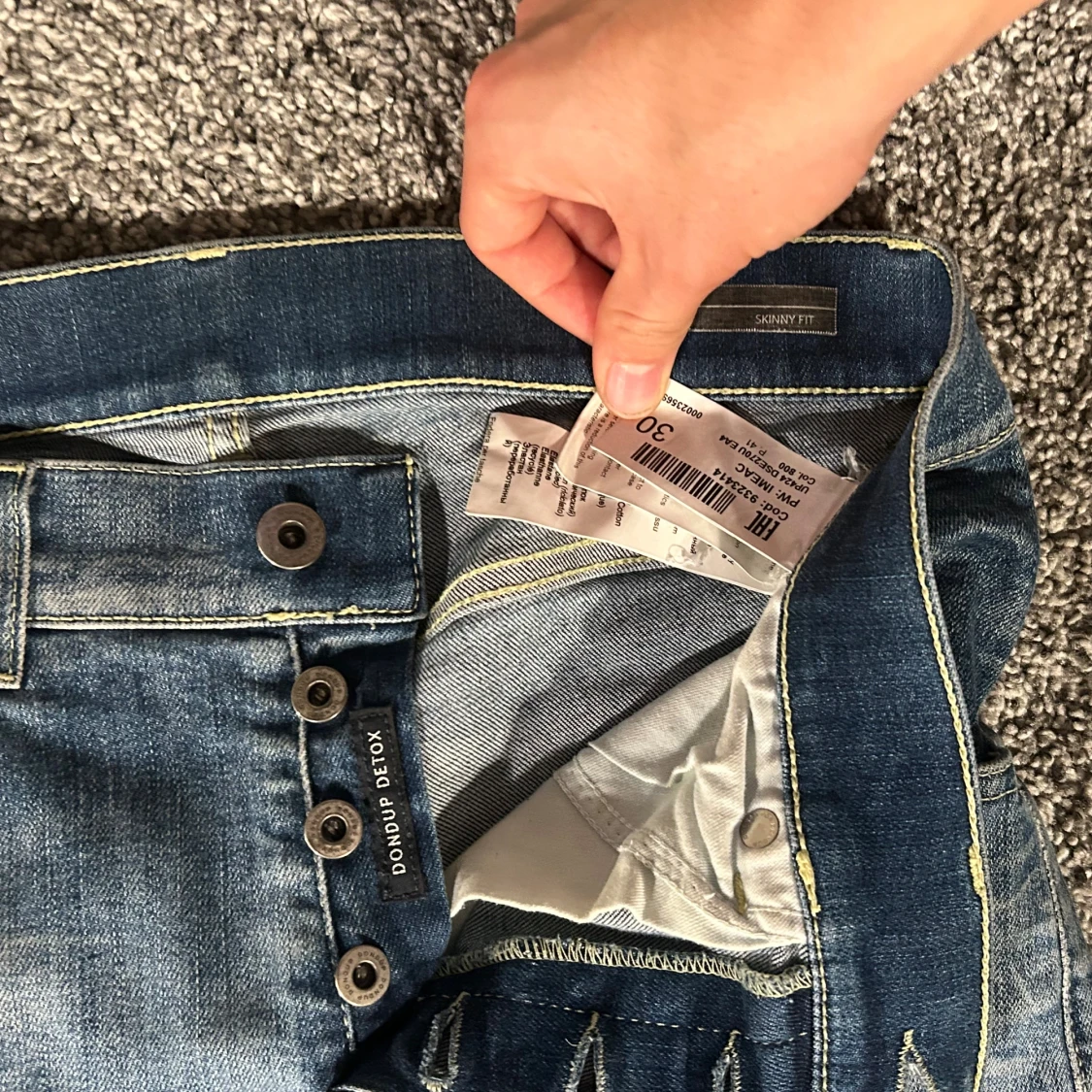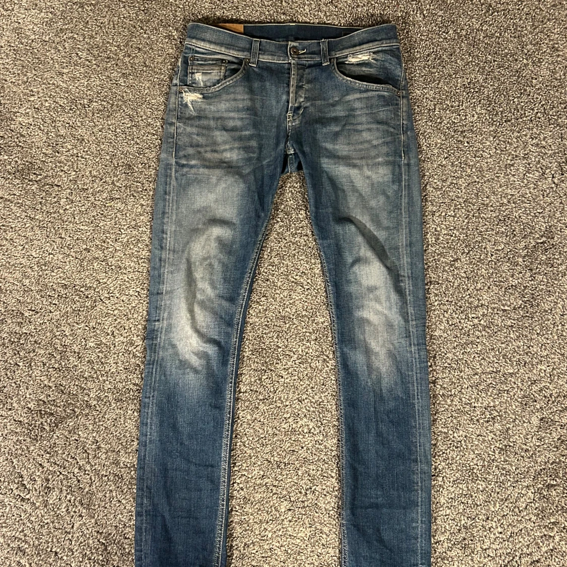 Säljer ett par blå skinny jeans från Dondup med slitna detaljer och snygg tvätt. Jeansen är i riktigt bra skick, knappt använda och köpte de nya. Passar längre 175-185. Hör av er vid frågor! //Tom✌🏼