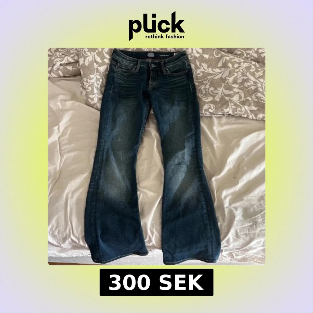 låg midjade utsvängda jeans, köpta här på plick, säljer då de var för små för mig