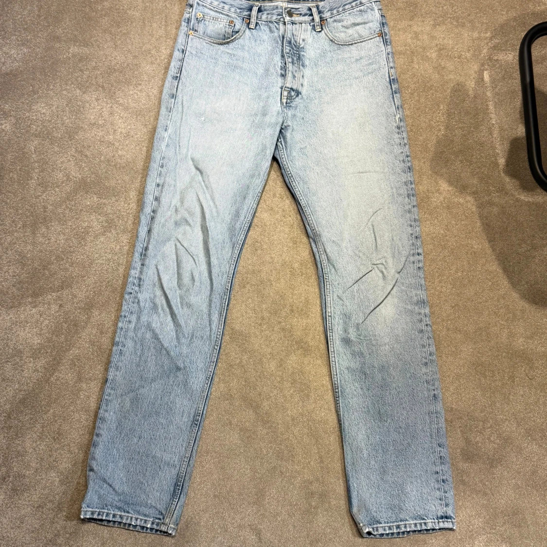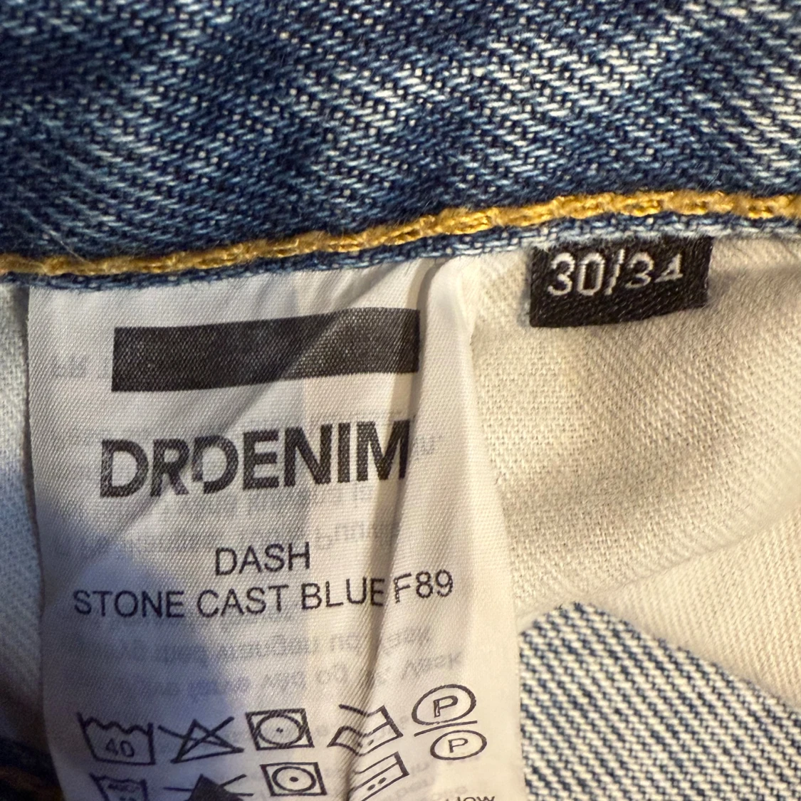 Säljer ett par Dr Denim Dash jeans i färgen Stone Cast Blue. De är ljusblå, raka i modellen och har klassisk femficksdesign. Jeansen är tillverkade i bomull och har en snygg, enkel look som passar till det mesta. Har litet hål i vardera framficka men går att sy igen och stör inte.