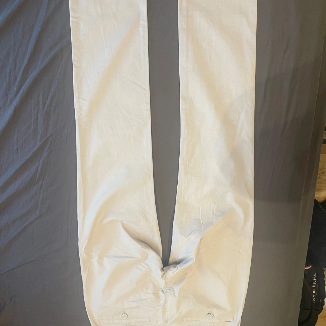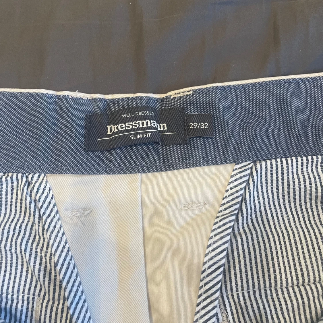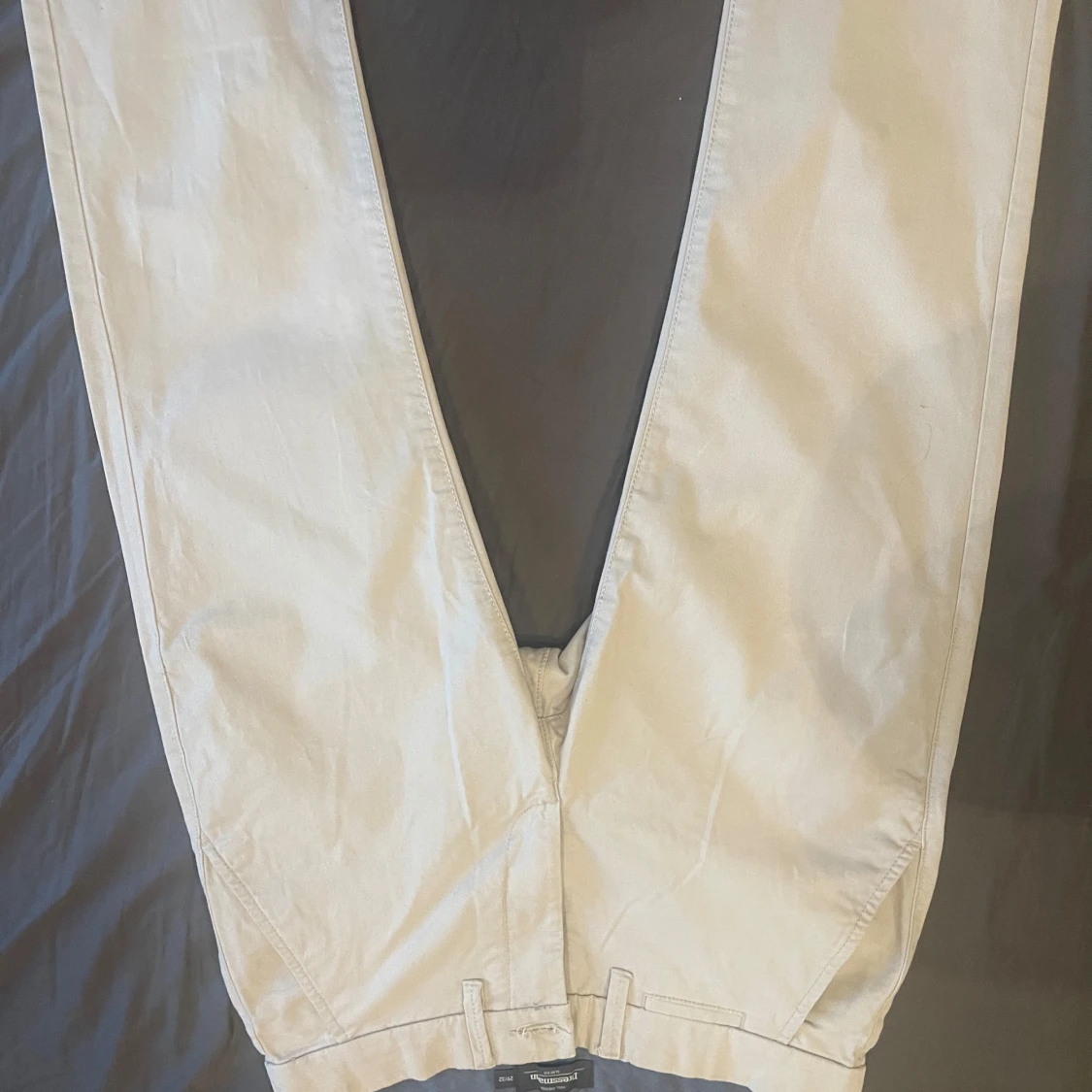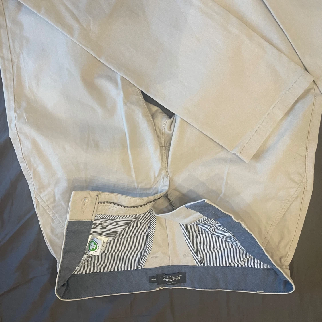 Snygga beige chinos från Dressmann i slim fit-modell, väldigt bekväma.