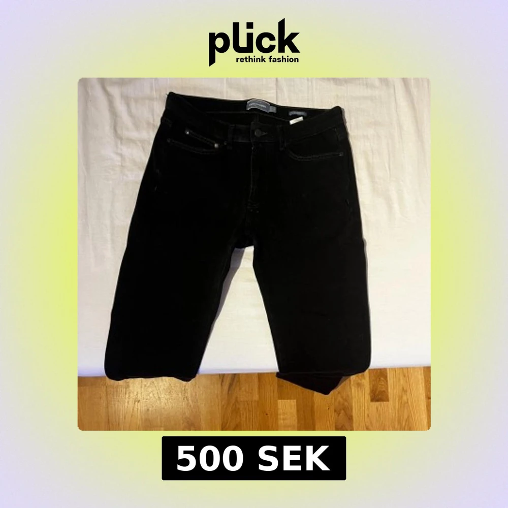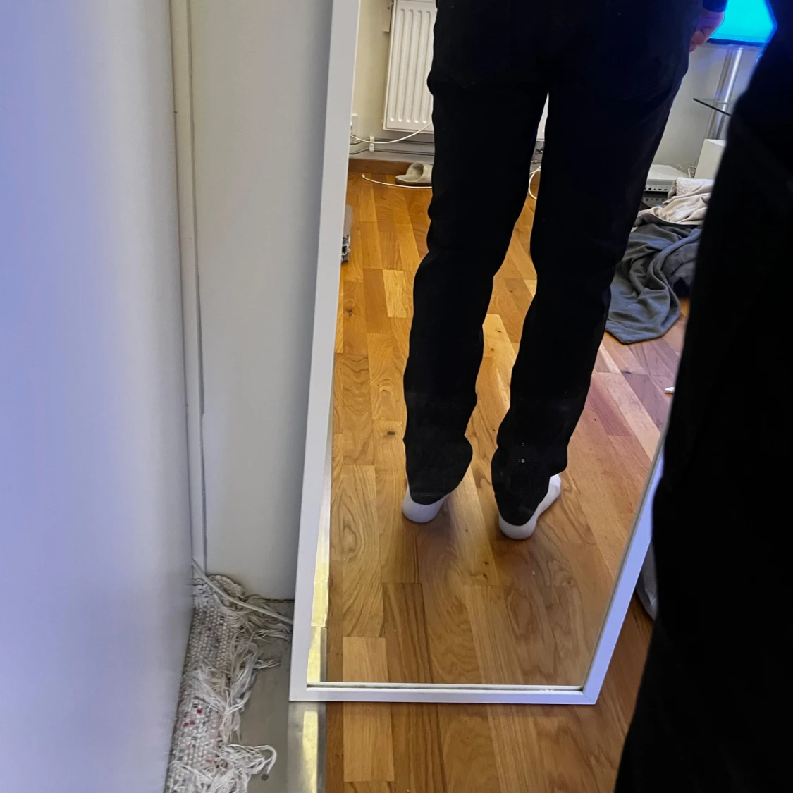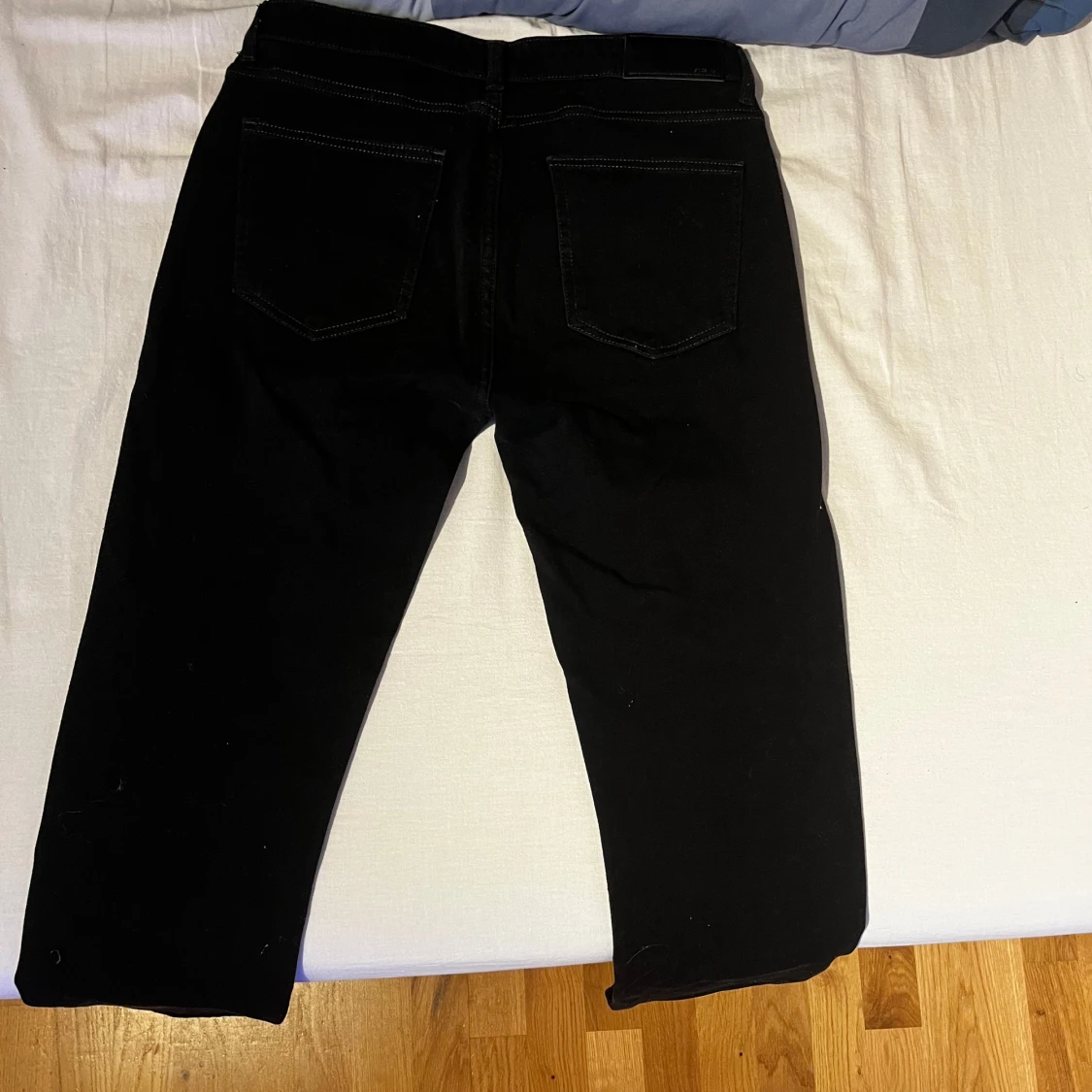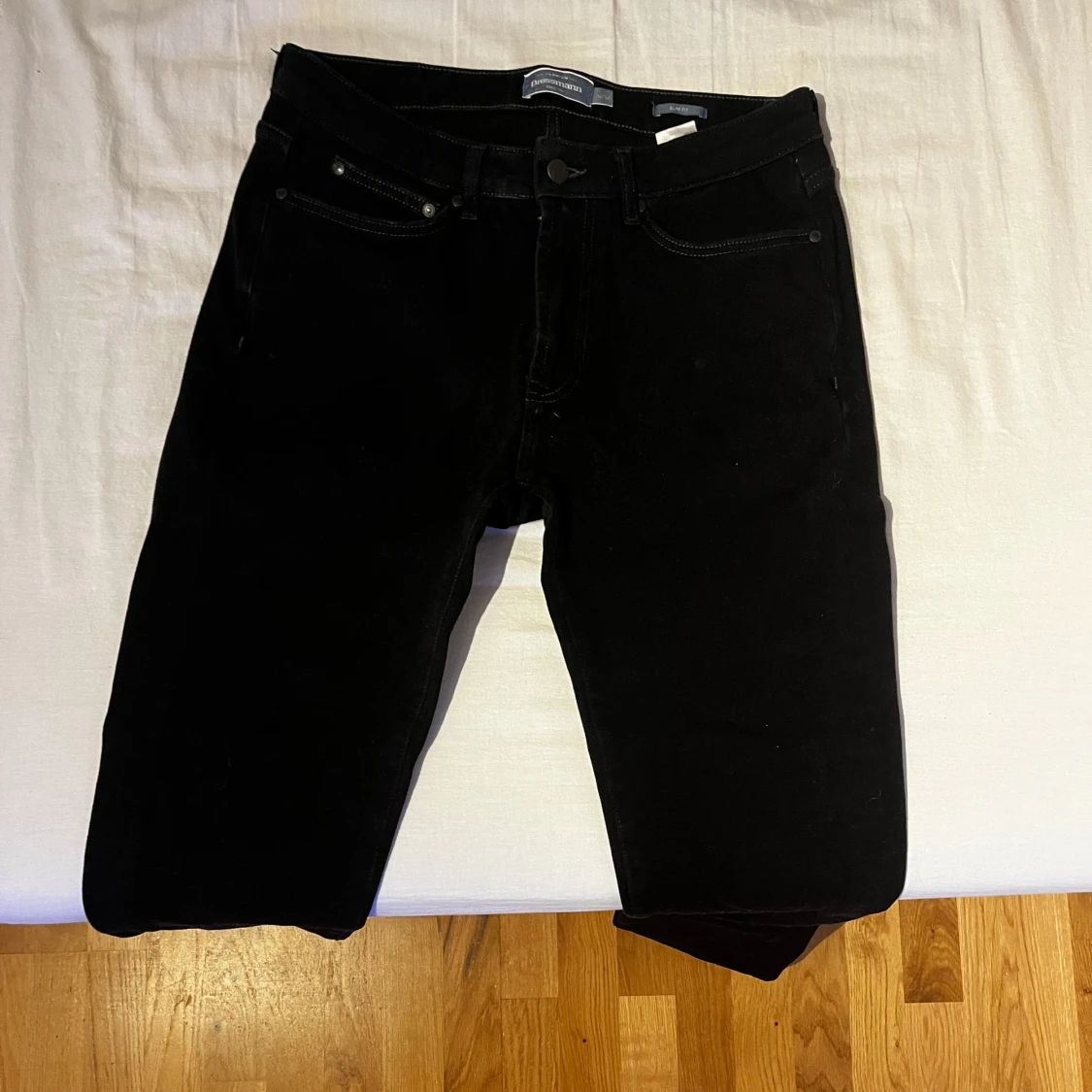 Snygga svarta jeansbyxor med en klassisk design. De har en slim fit passform och är tillverkade i ett slitstarkt system material. Perfekta för en stilren look.Storlek 32/32