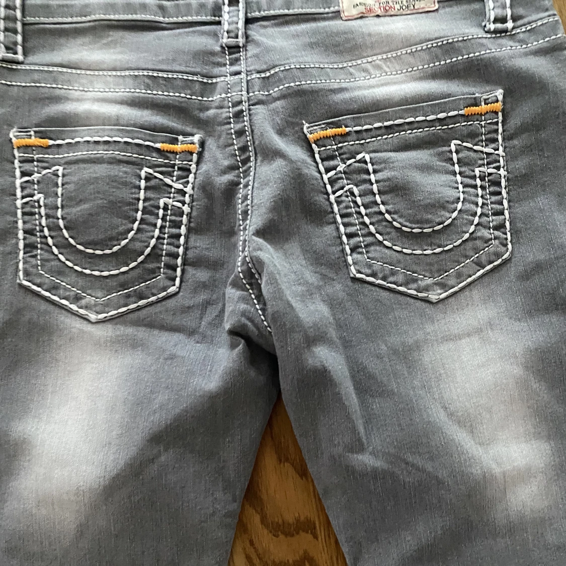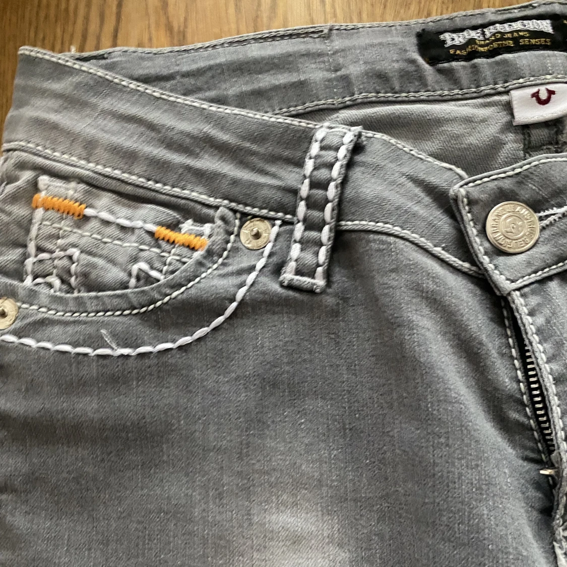 Dessa gråa true religon jeans ( förövrigt en ovanlig färgkombination) är i extremt gott skick och passar den omkring 170-175 kanske till och med kortare. 100 cm i längd, 40 cm i midjan. Extremt snygga för någon som vill ha ett unikt par true religon