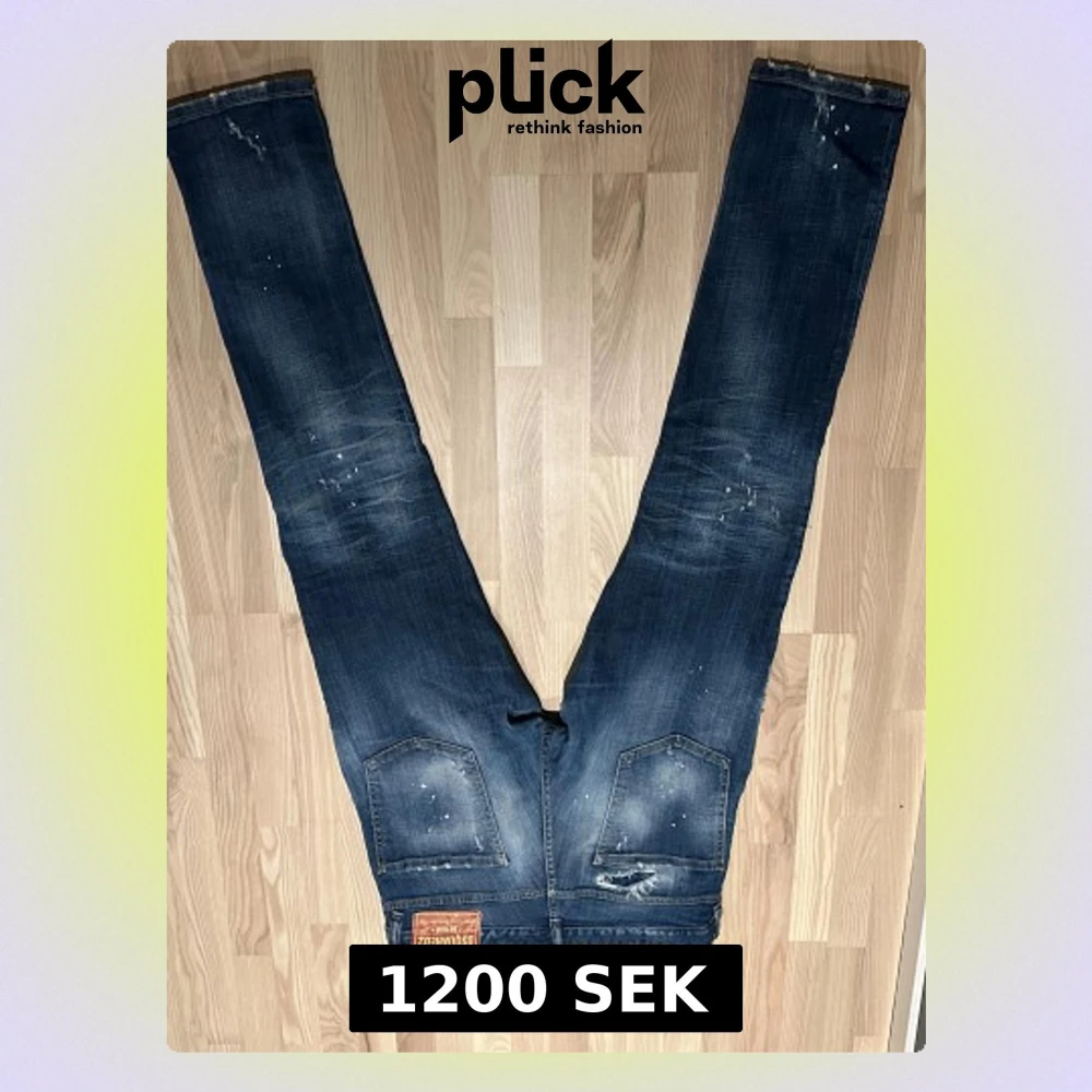 Säljer ett par mörkblå dsquared jean med coola slitningar och färgstänk för en edgy look. Jeansen är i i modellen Cool guy.vid frågor eller funderingar är det bara att skriva.//Samuel