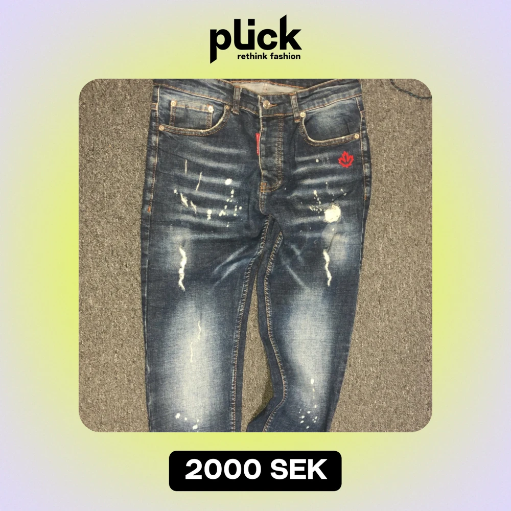 Säljer ett par snygga jeans från Dsquared2 Caten heated i blå denim. Inte använda så mycket säljer dom för att jag ej använder dom längre.