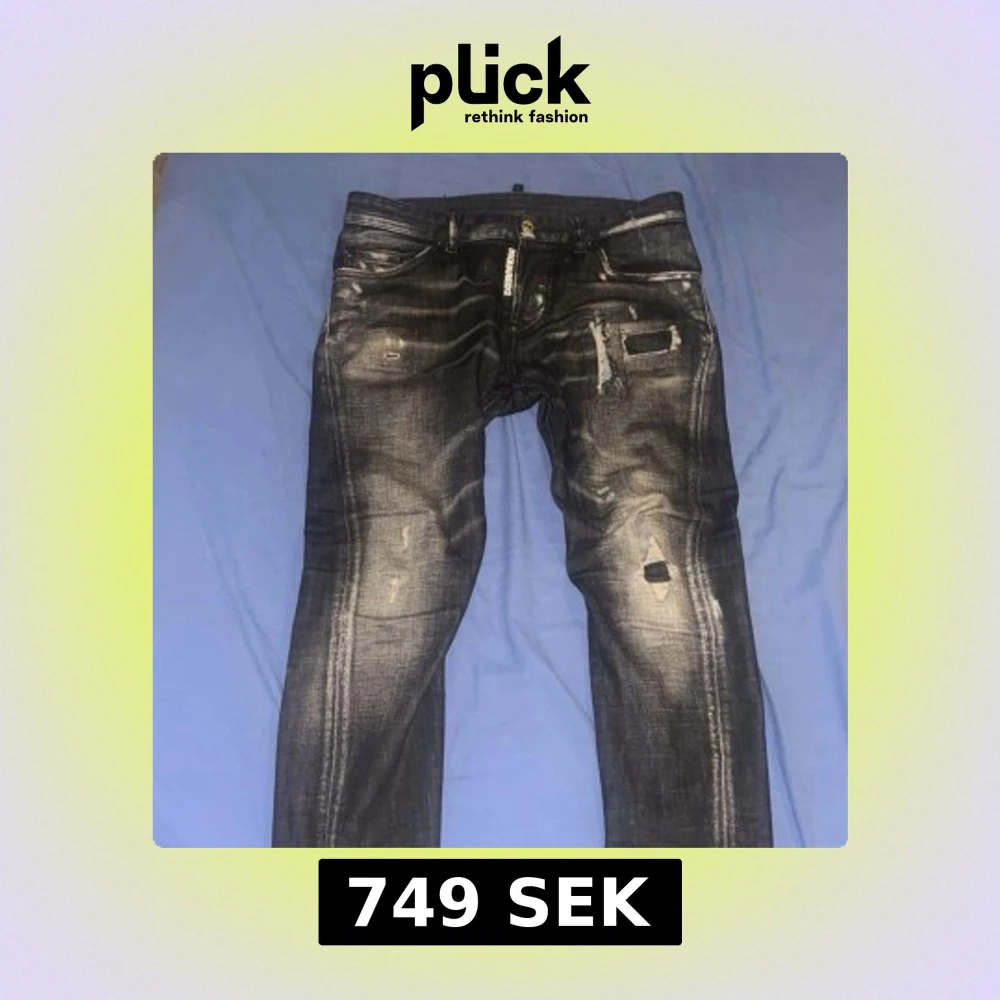 Säljer dom här snygga dsquared 2 jeansen pågrund av att dom är för små, köpta för lite mer än 2000kr, den ända nackdelen är att det blev ett hål men det har jag lagat som du kan se på bild 3 och 4, storlek 14y-164cm men passar lite mindre också, äkta såklart