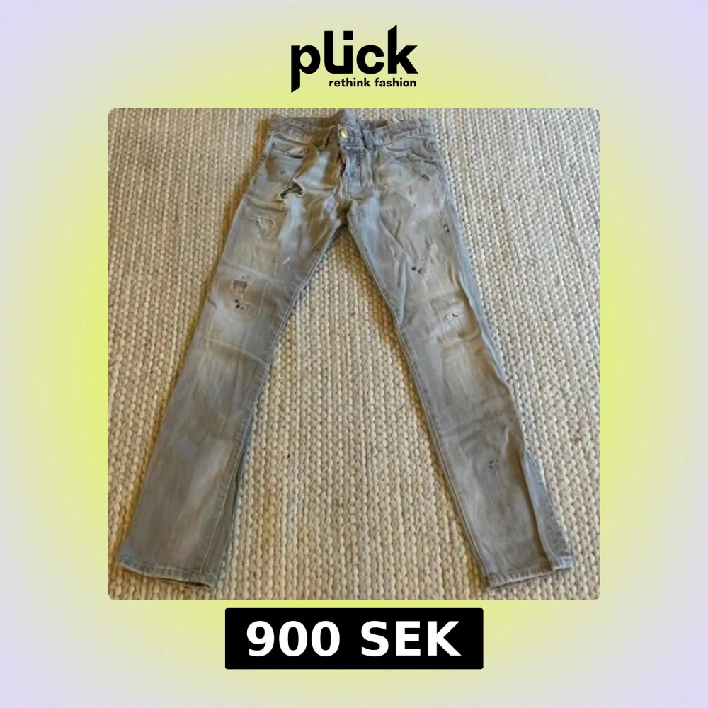 Grå jeans från Dsquared2 med slitna detaljer och snygga hål på flera ställen. Byxorna har klassisk femficksdesign, gylf med dragkedja och en gul Dsquared2-patch bak. Materialet är 98% bomull och 2% elastan för en bekväm passform.