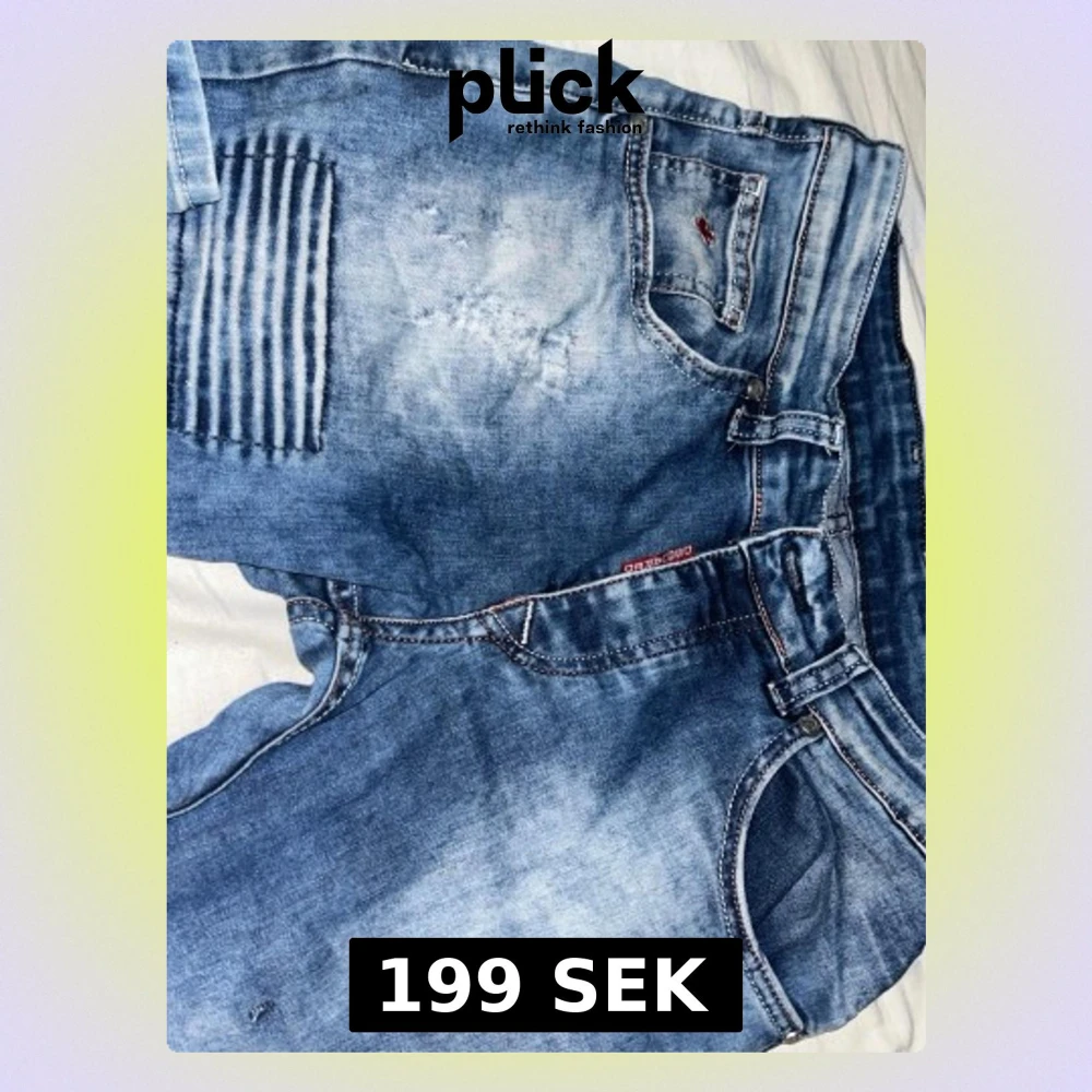 Säljer ett par blå jeans från Dsquared2 med coola ribbade detaljer på både fram- och bakfickor. Jeansen har en tvättad look med ljusare partier. Snygga kontrastsömmar och logga på bakfickan ger extra stil. Inte så använda, men i helt ok skick — därav priset. Pris kan diskuteras!