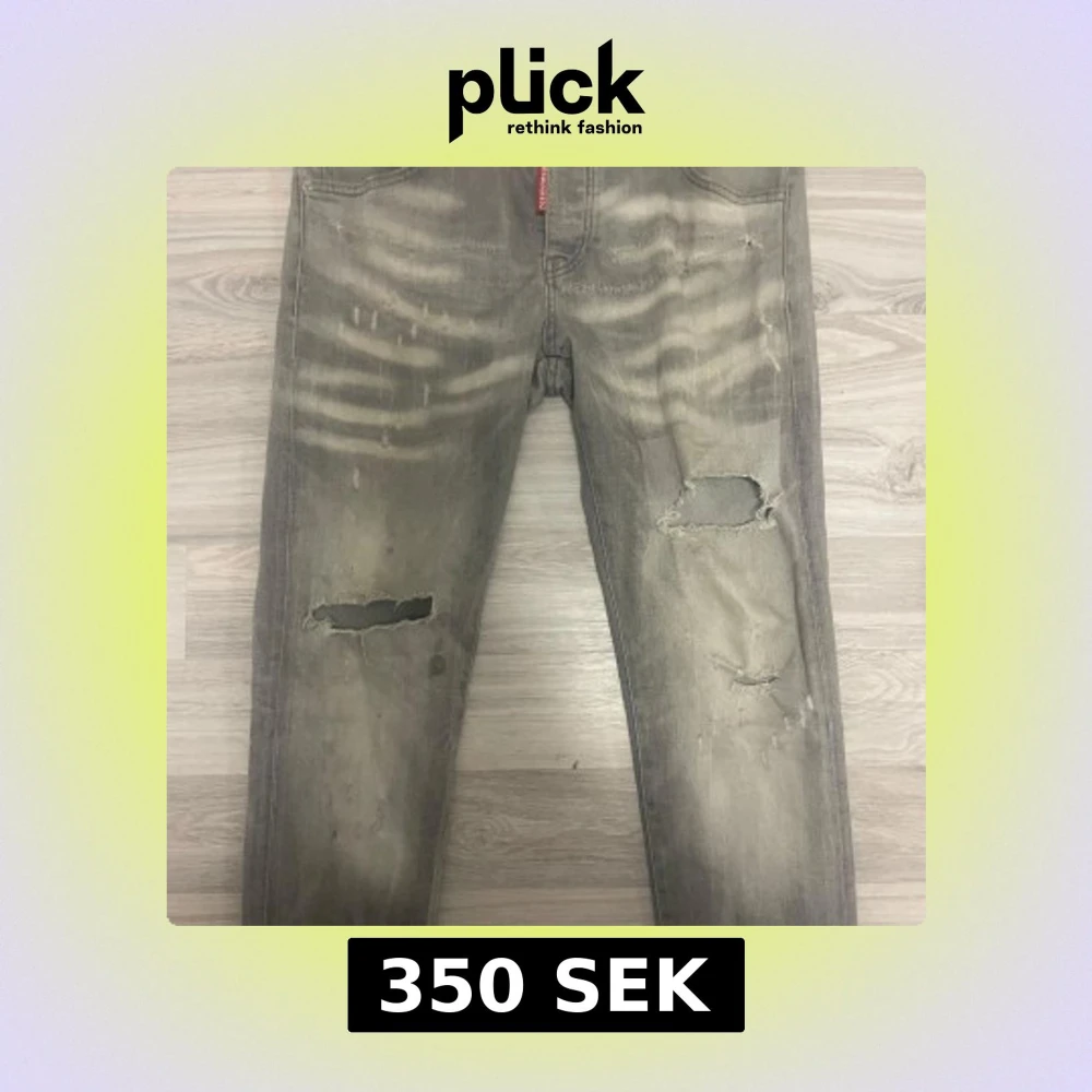 Fickorna är sönder men priset är inte hugget i sten Riktigt snygga grå jeans från Dsquared2 med coola slitningar och hål på benen. Jeansen har en tvättad look med ljusa partier och klassiska fem fickor. Perfekta för dig som gillar en edgy streetstil.
