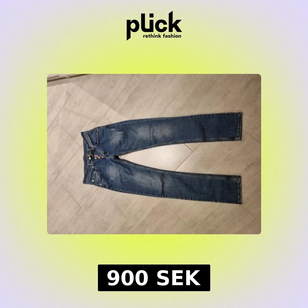 Säljer ett par klassiska dsquared2 jeans i blå tvätt med lätt slitna detaljer. Modellen har rak passform, fem fickor och knappgylf. Perfekt för dig som gillar en tidlös look med lite edge. Materialet är robust denim i bomull.