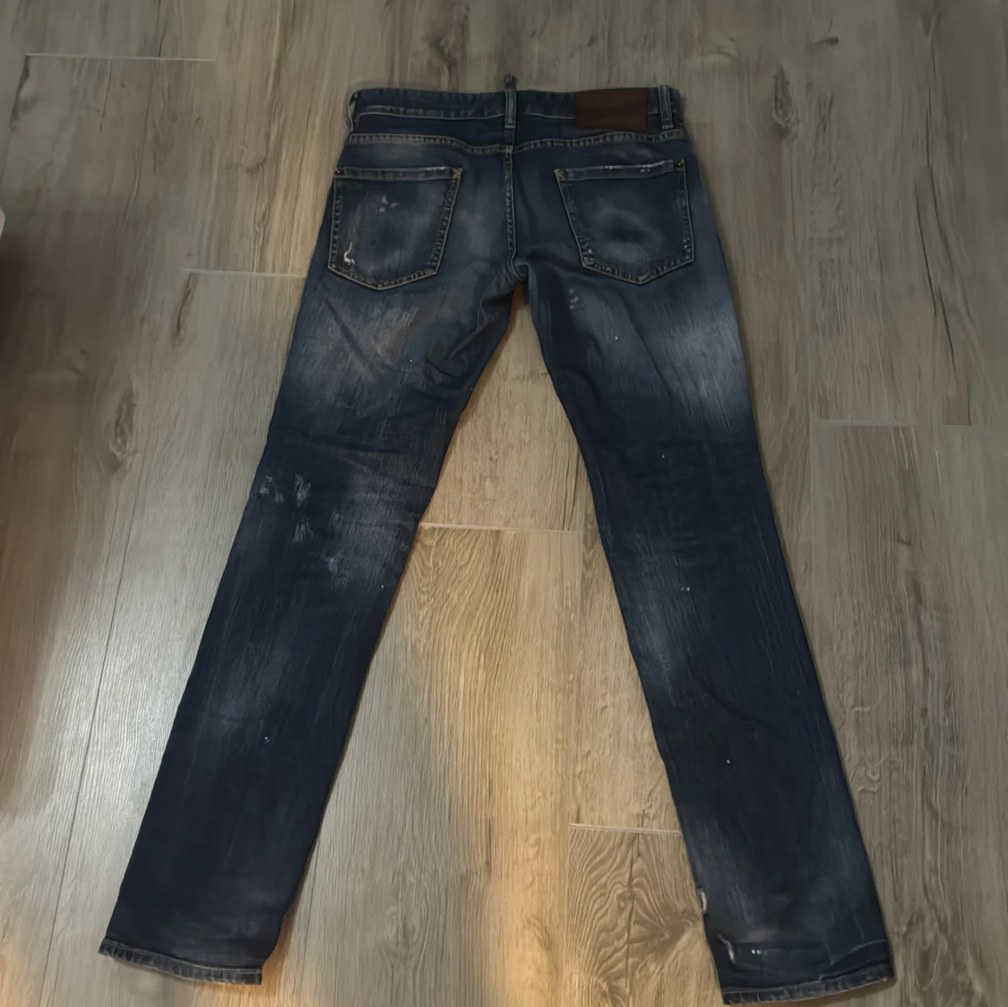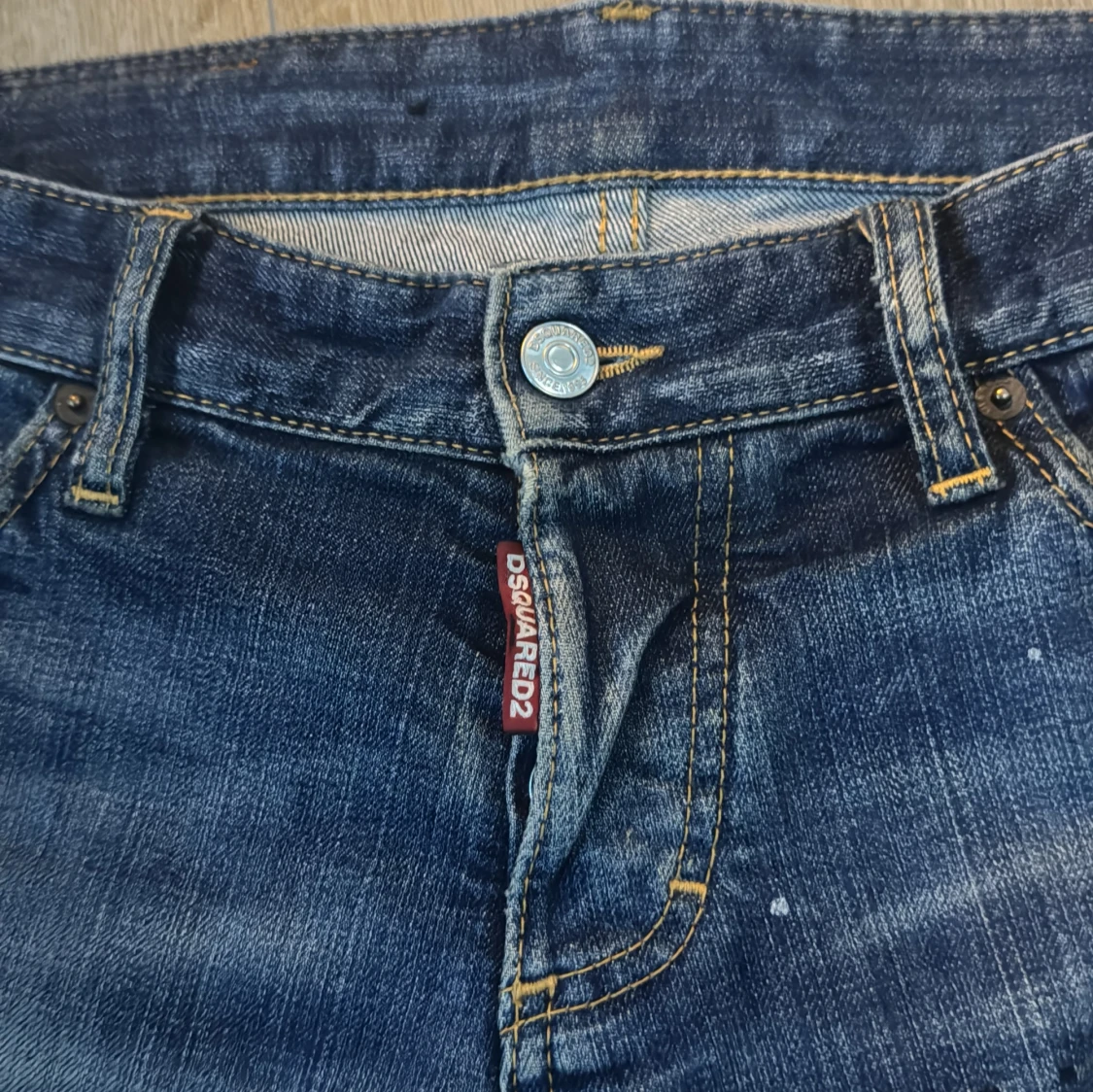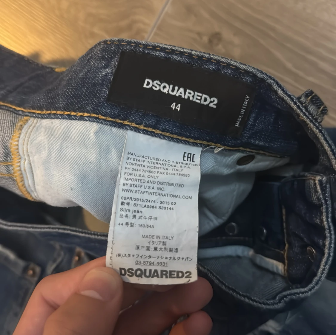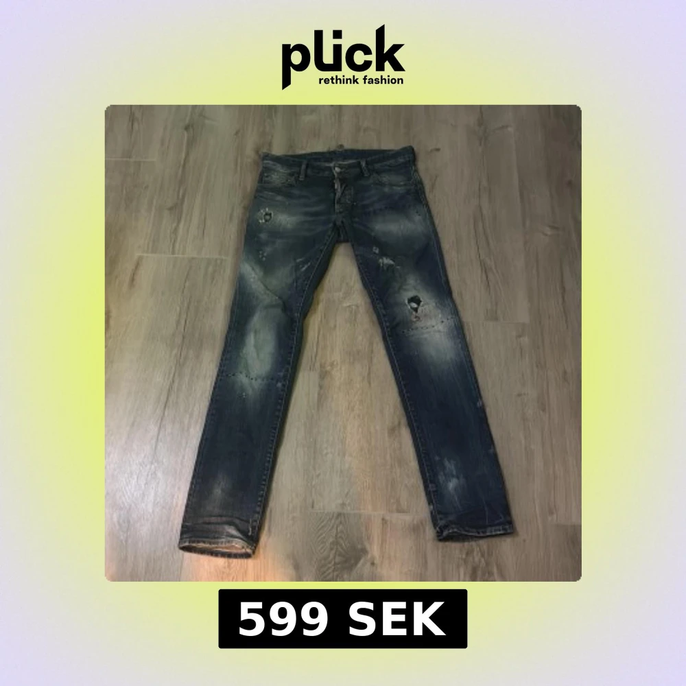 Snygga blå jeans från Dsquared2 i slim fit-modell med slitna detaljer och hål på benen. Jeansen har klassisk femficksdesign, tydliga slitningar och en cool tvätt. Dsquared2-logga vid gylfen. Perfekta för dig som gillar streetstyle.
