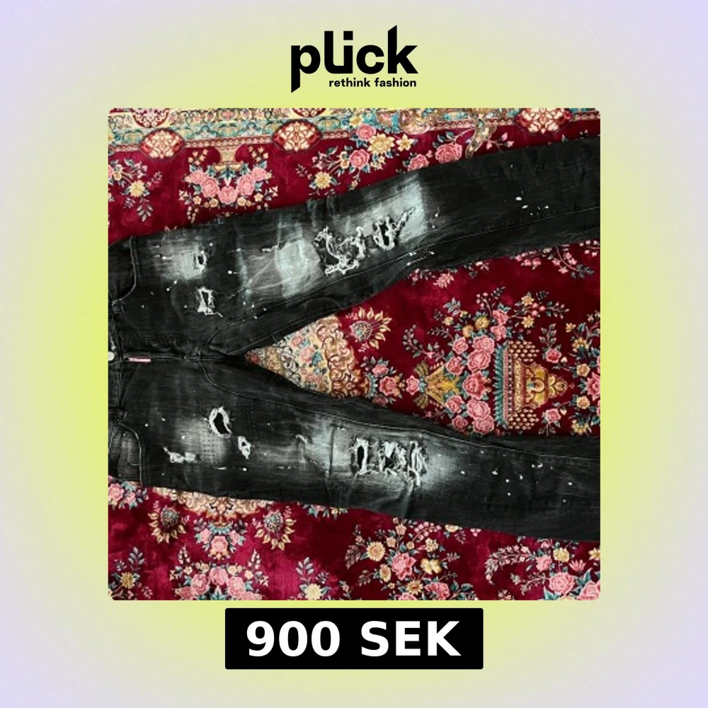 Riktigt snygga svarta jeans från Dsquared2 med slitna detaljer, hål och vit färgskvätt för en edgy look. Jeansen har klassisk femficksdesign, raka ben och är tillverkade i bomull med en cool tvättad finish. Perfekta för dig som gillar streetstyle.
