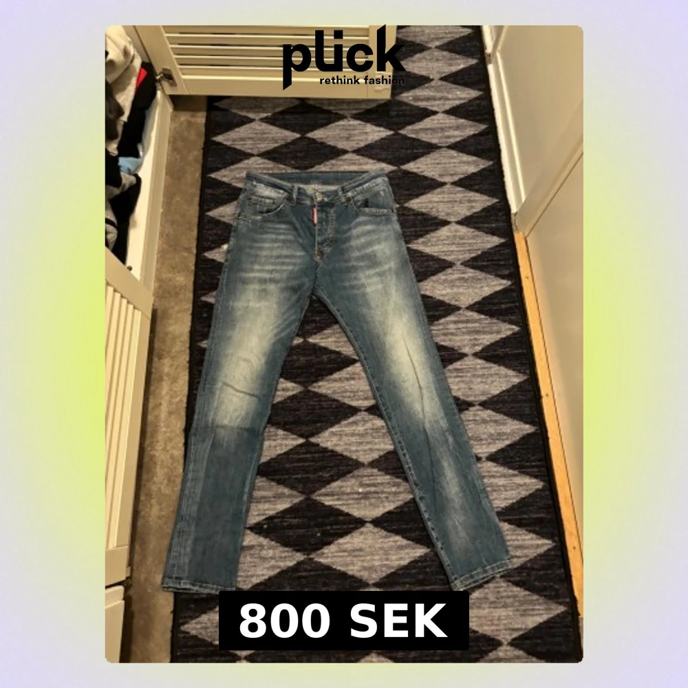 Snygga blå jeans från Dsquared2 i storlek 46. Jeansen har en klassisk femficksmodell, ljus tvätt med slitningar och raka ben. Perfekta för dig som gillar en stilren och modern look.