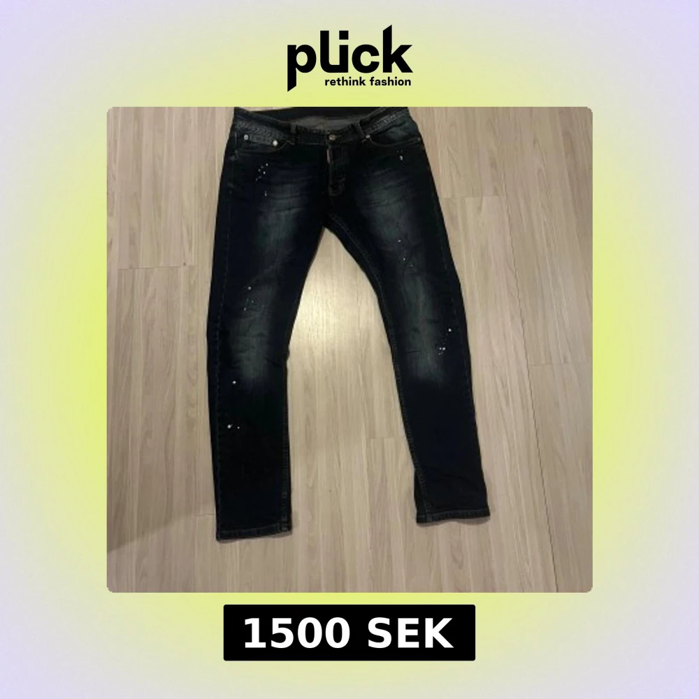 Snygga mörkblå jeans från Dsquared2 med coola slitningar och vita färgstänk. Klassisk femficksmodell med metallogo bak och kontrastsömmar. Jeansen har en rak passform och är tillverkade i mjukt denimtyg för en bekväm känsla.