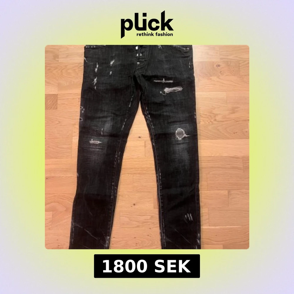 Säljer ett par svarta Dsquared2 Skater Jeans med slitna detaljer och coola trasiga partier. Byxorna har en smal passform och klassisk femficksdesign. Tillverkade i Italien med ikonisk Dsquared2-lapp bak. Perfekt för dig som gillar streetstyle.
