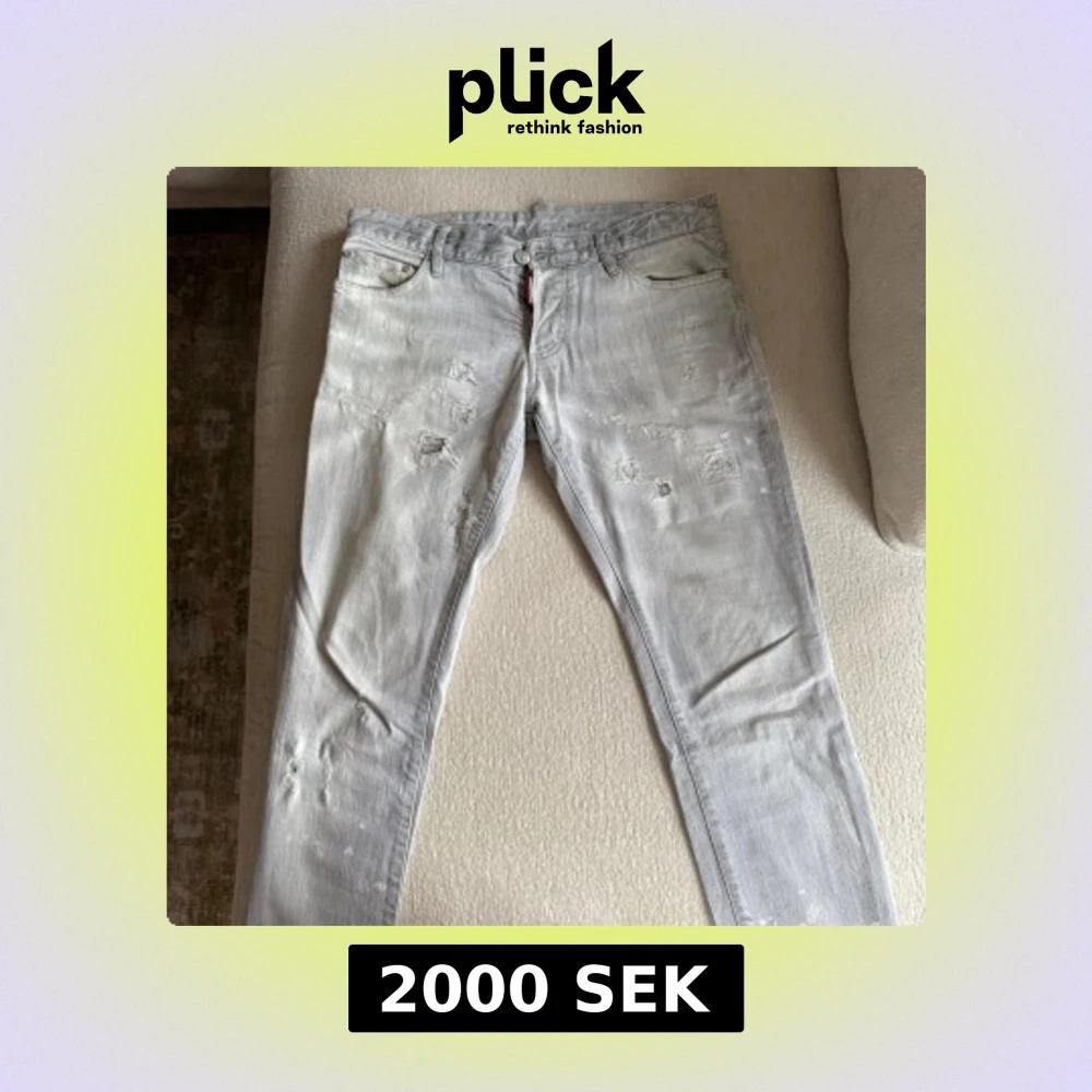 ÄKTA Slim fit jeans från Dsquared2 i ljusgrå denim med slitna detaljer och distressed look. Klassisk femficksmodell med knappgylf och Dsquared2-logga på röd etikett. Snyggt val för dig som gillar streetstyle och italiensk design. - 💶Nypris: 5900