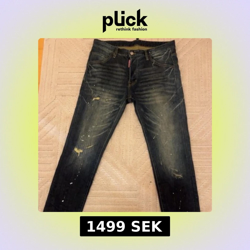 Snygga mörkblå Dsquared2 med coola slitningar och färgstänk för en edgy look. Klassisk femficksmodell med smal passform och detaljerade sömmar. Perfekta för dig som vill sticka ut med en streetinspirerad stil.